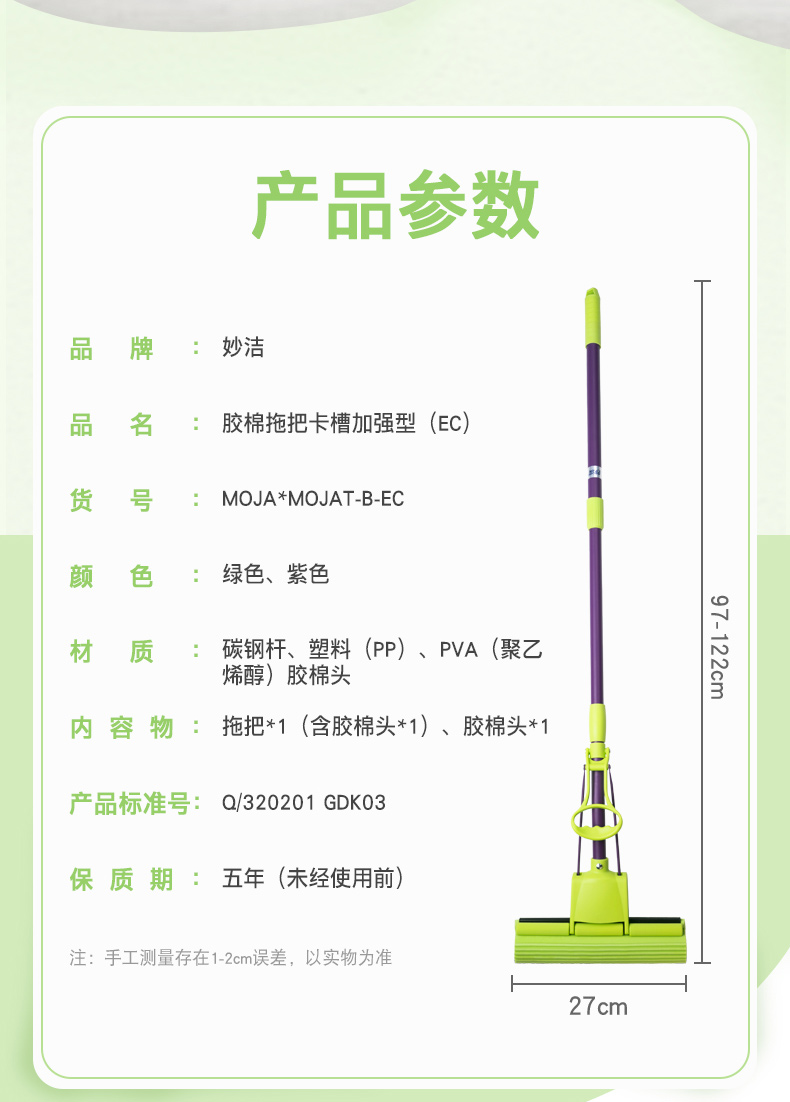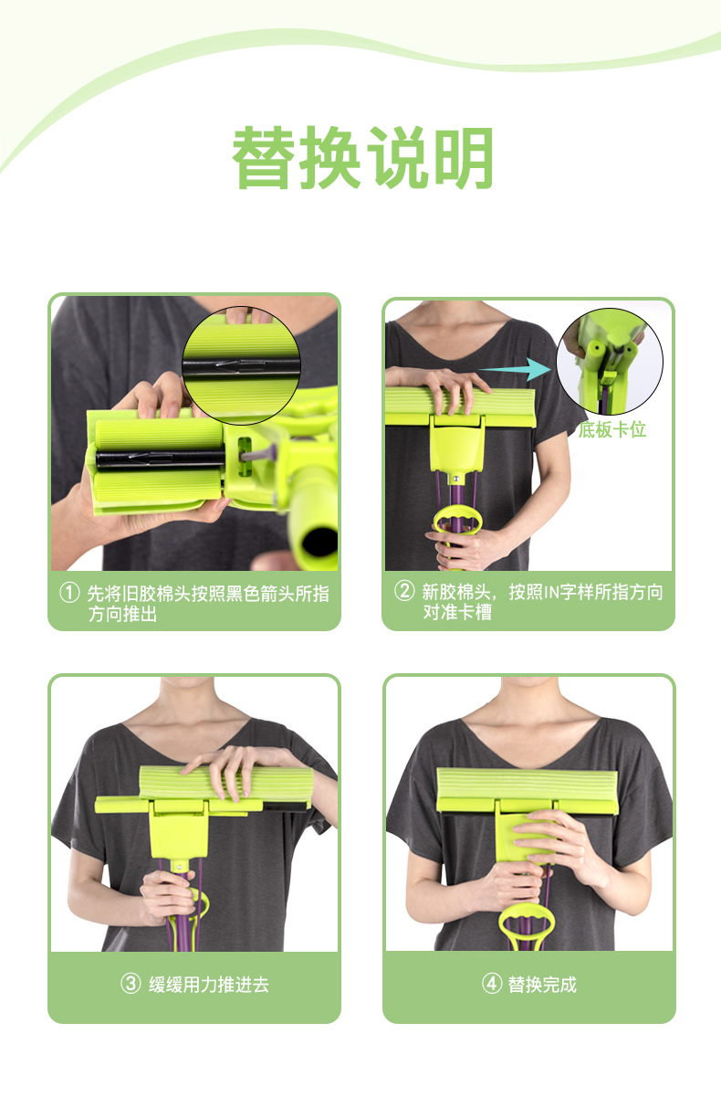 妙洁 拖把海绵 共2个胶棉头 懒人免手洗 吸水胶棉地墩布 家用一拖净MOJ-A 单位:个 混色