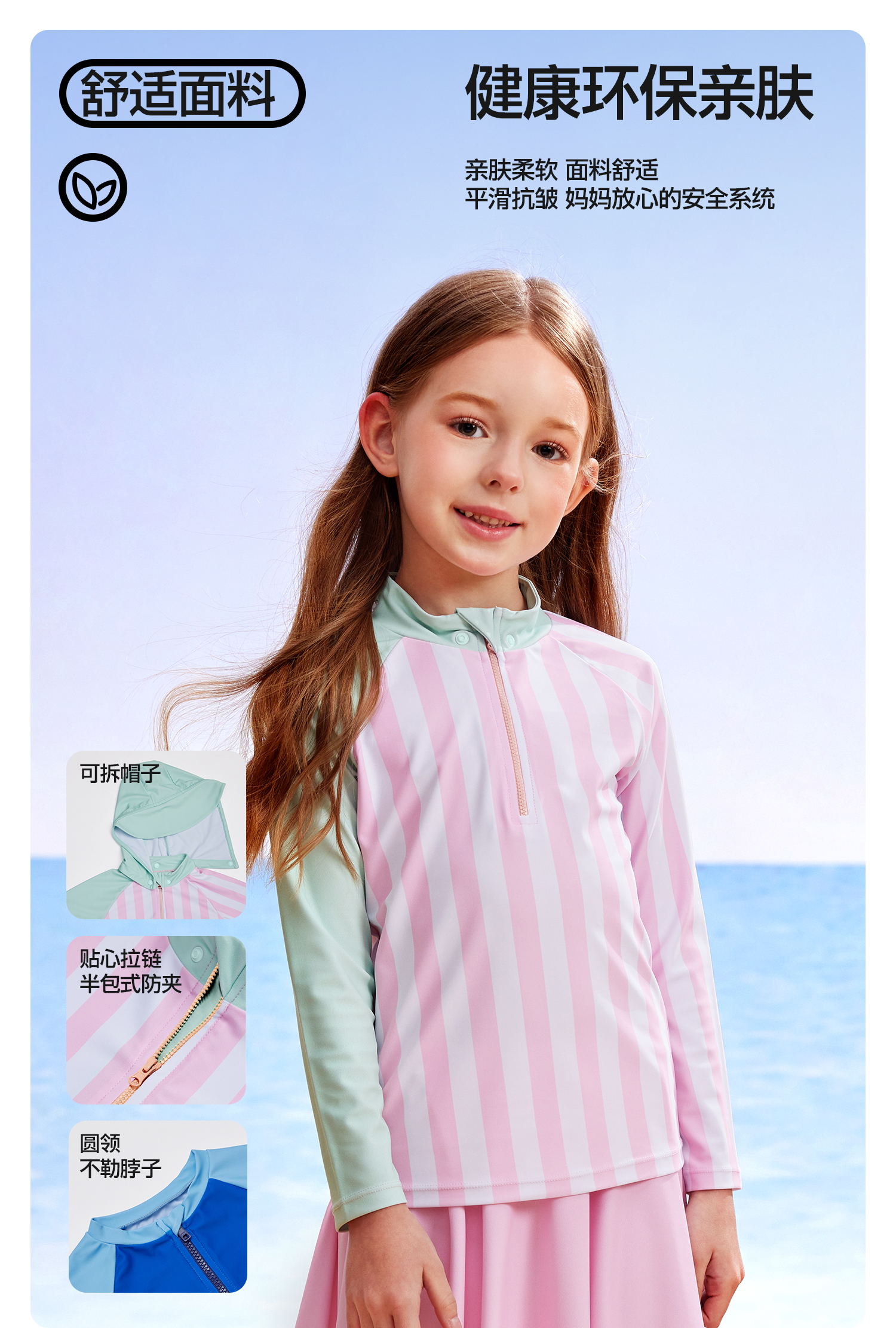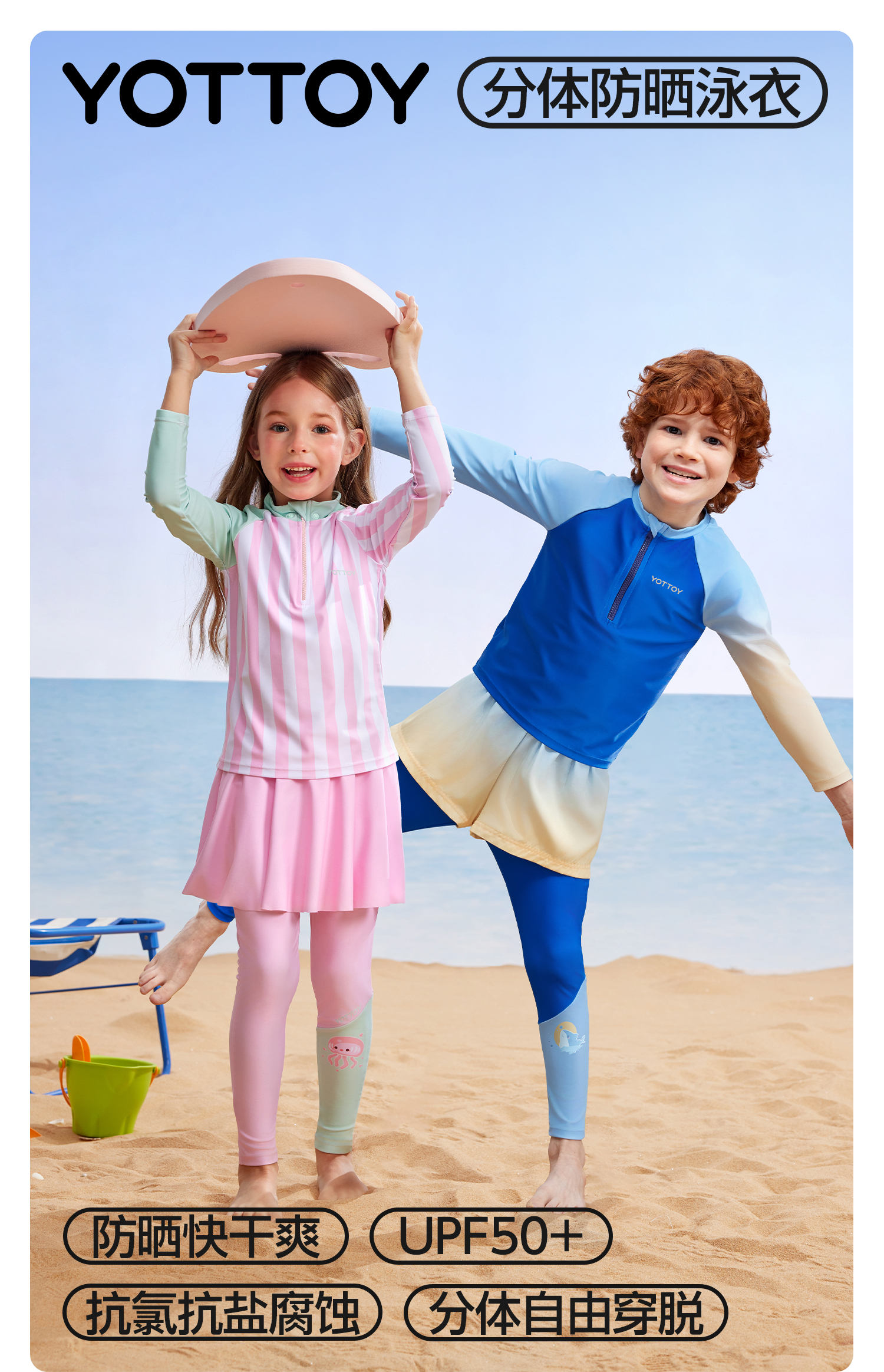 YOTTOY 女童防晒泳衣7A抑菌上衣+帽子-盛夏花园-(100) yyyy2504x1A00010100z018 100mm 粉色(单位:件)