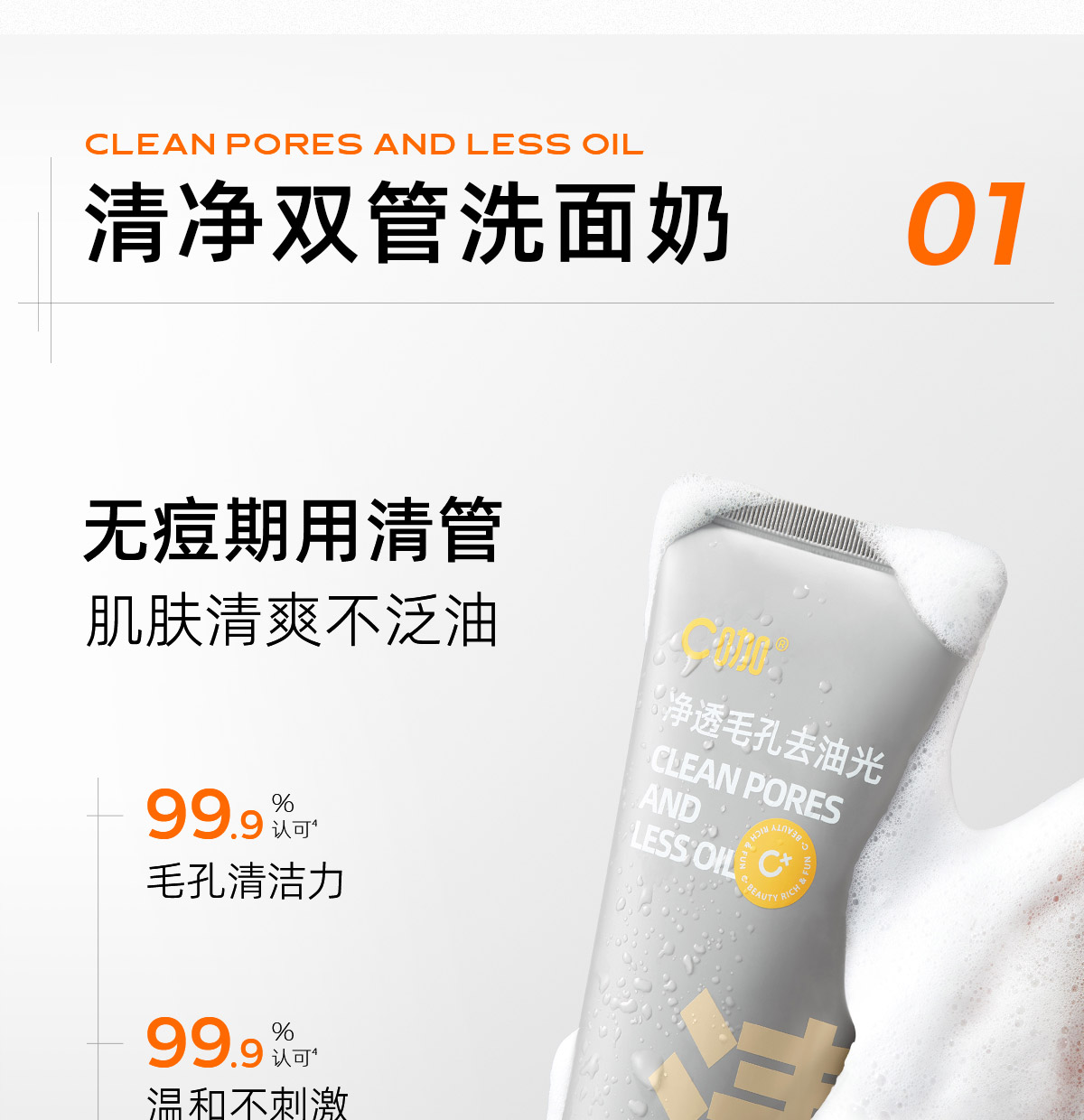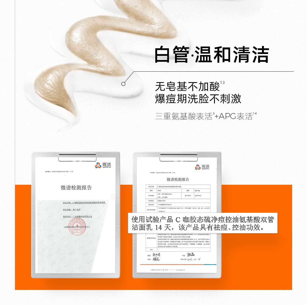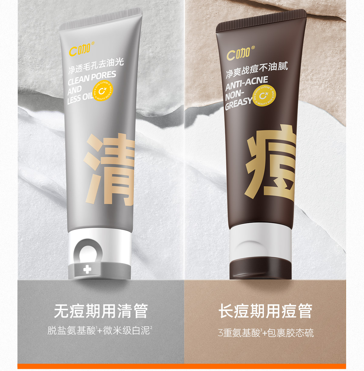 C咖 清洁80g祛痘80g氨基酸洁面乳清透控油抗痘黑头洗面奶男女 yzh003 80g*2 混色(单位:组合)