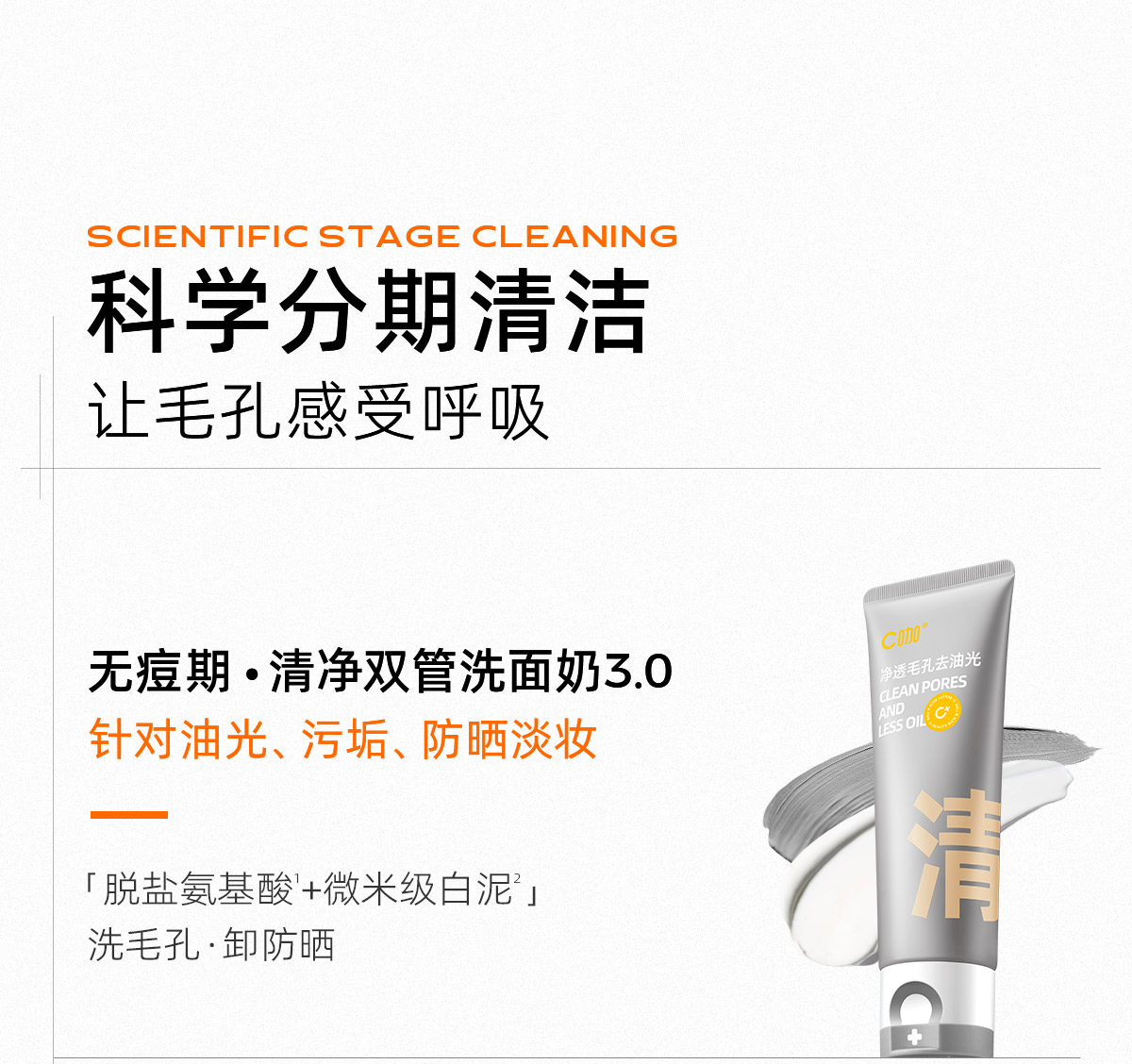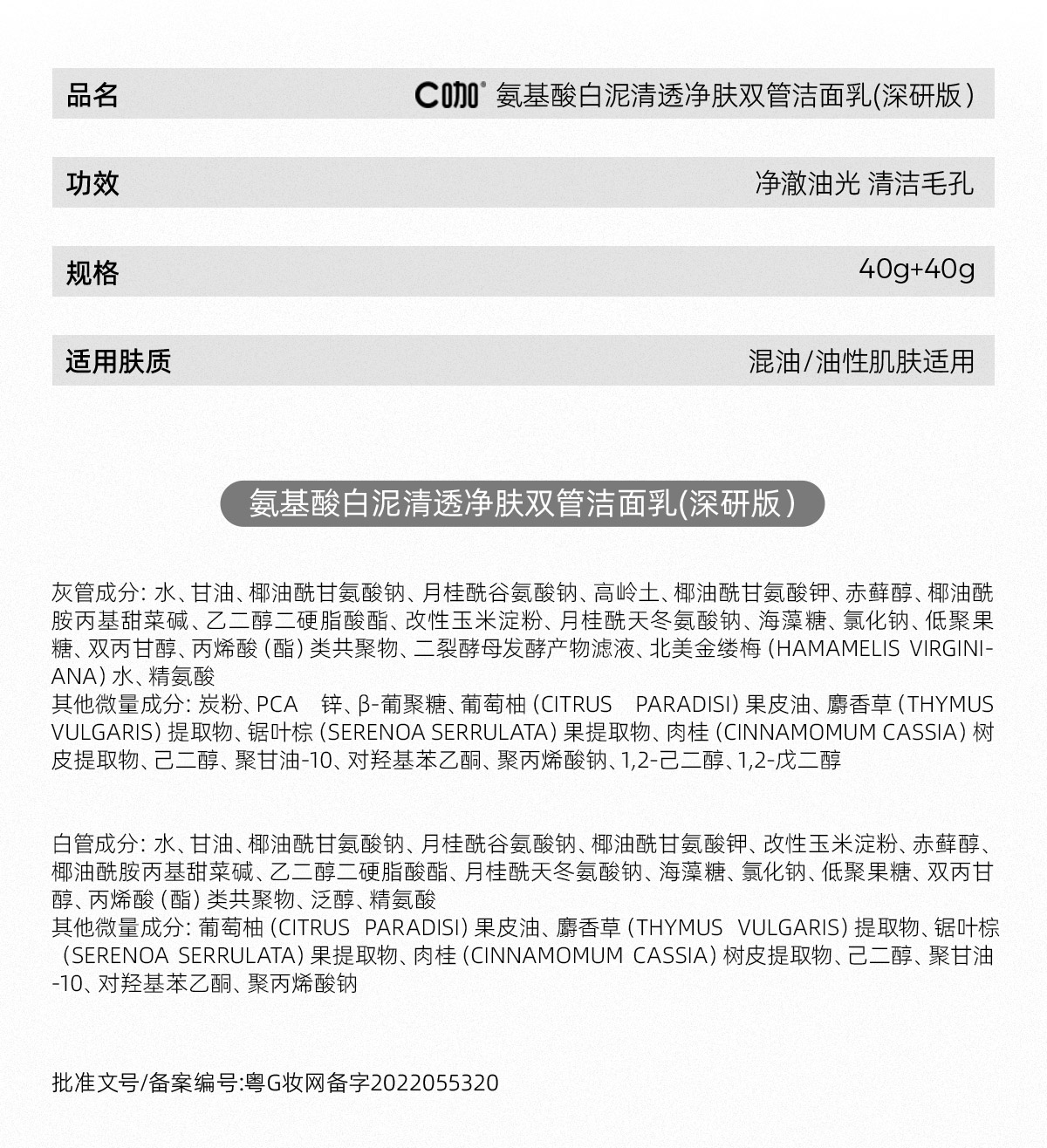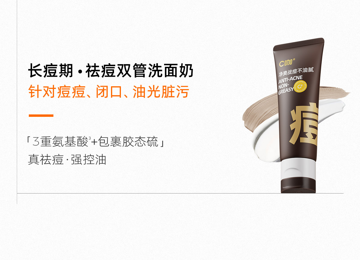 C咖 清洁80g祛痘80g氨基酸洁面乳清透控油抗痘黑头洗面奶男女 yzh003 80g*2 混色(单位:组合)