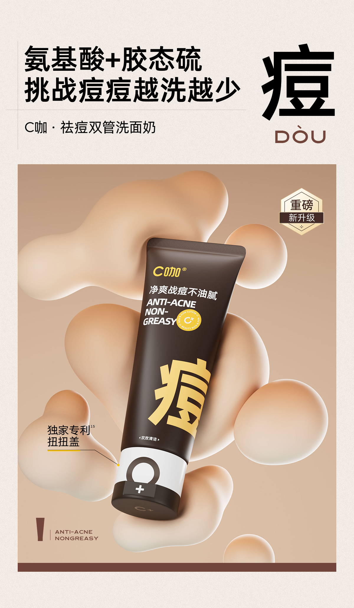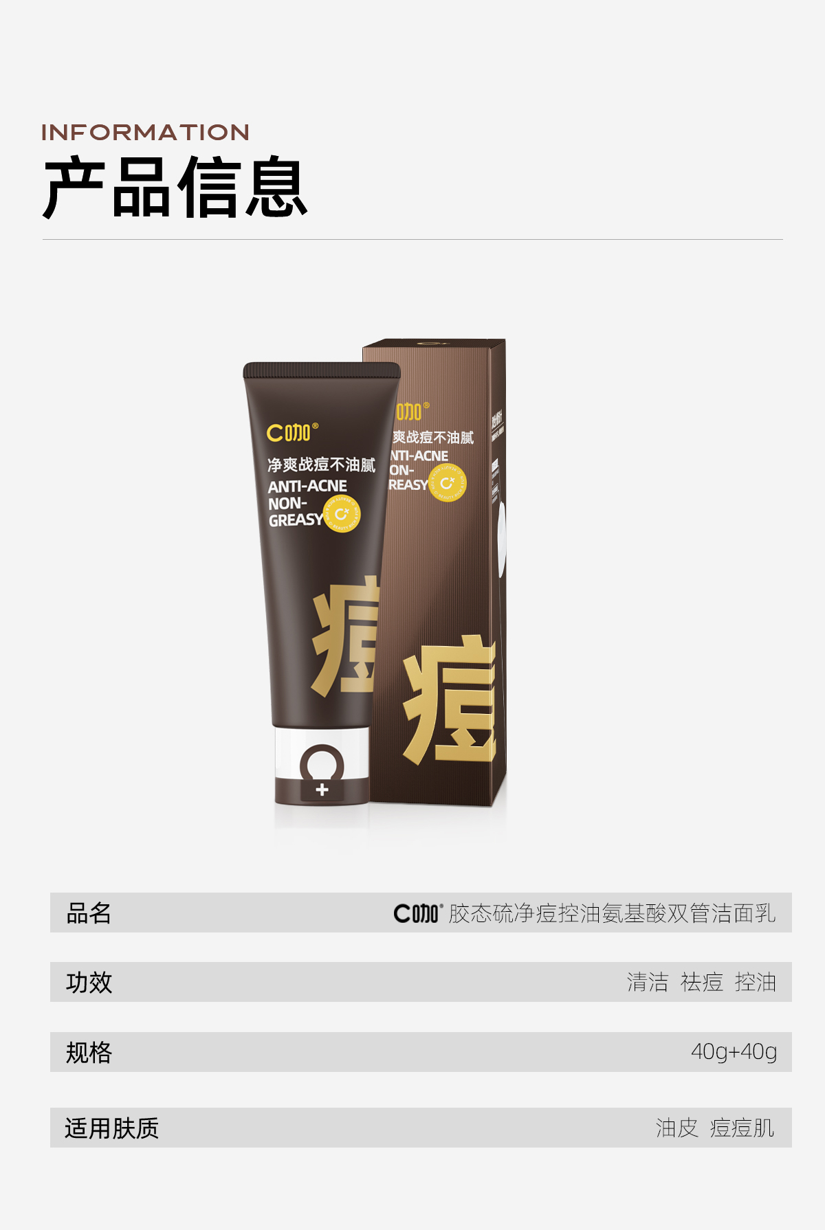 C咖 祛痘双管洗面奶80g*2氨基酸控油净痘深层清洁洁面乳男女 yzh005 80g*2 混色(单位:组合)