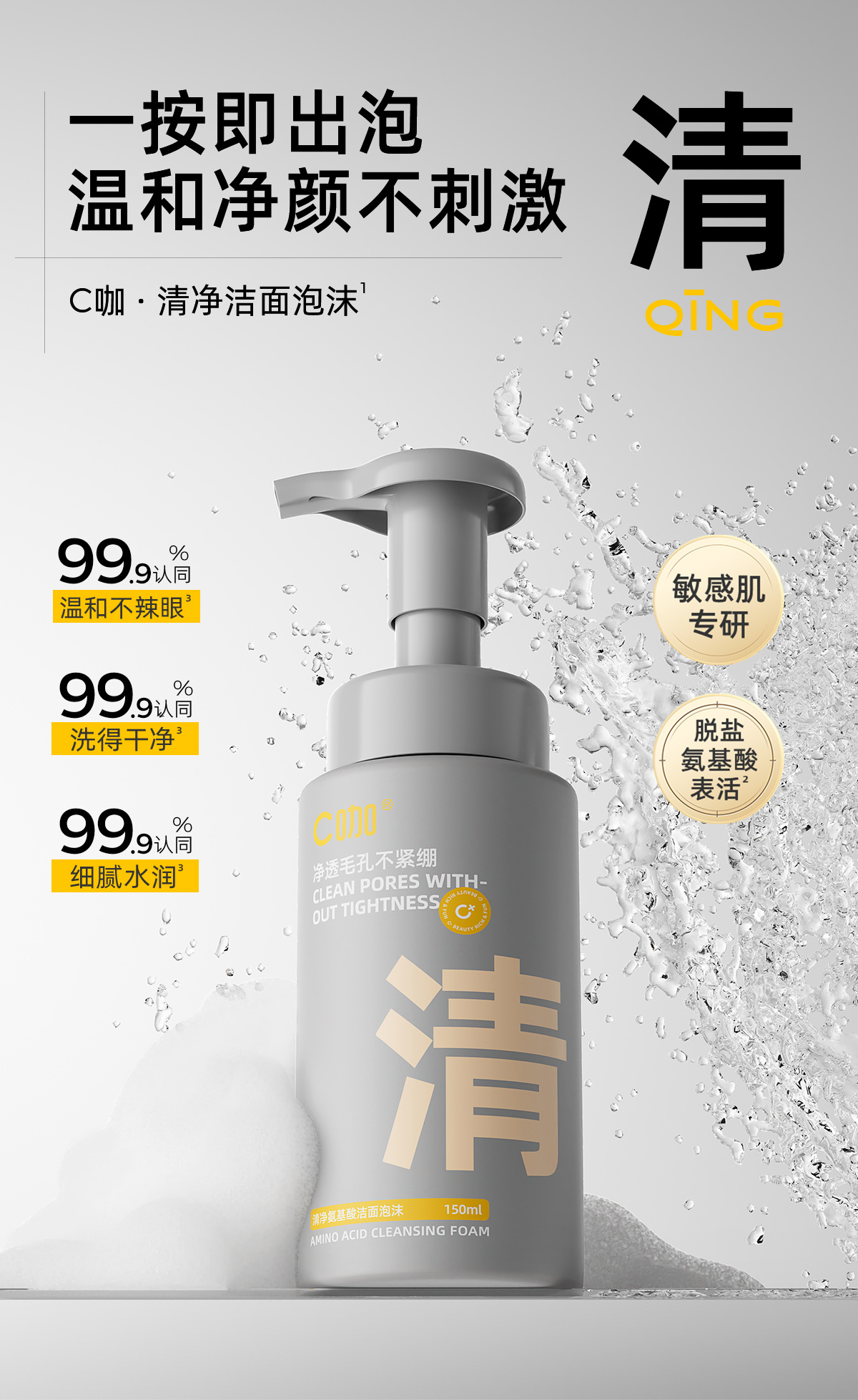 C咖 C咖清洁氨基酸泡沫洗面奶两支装温和清洁净肤控油保湿洁面慕斯 yzh012 150ml*2 混色(单位:组合)