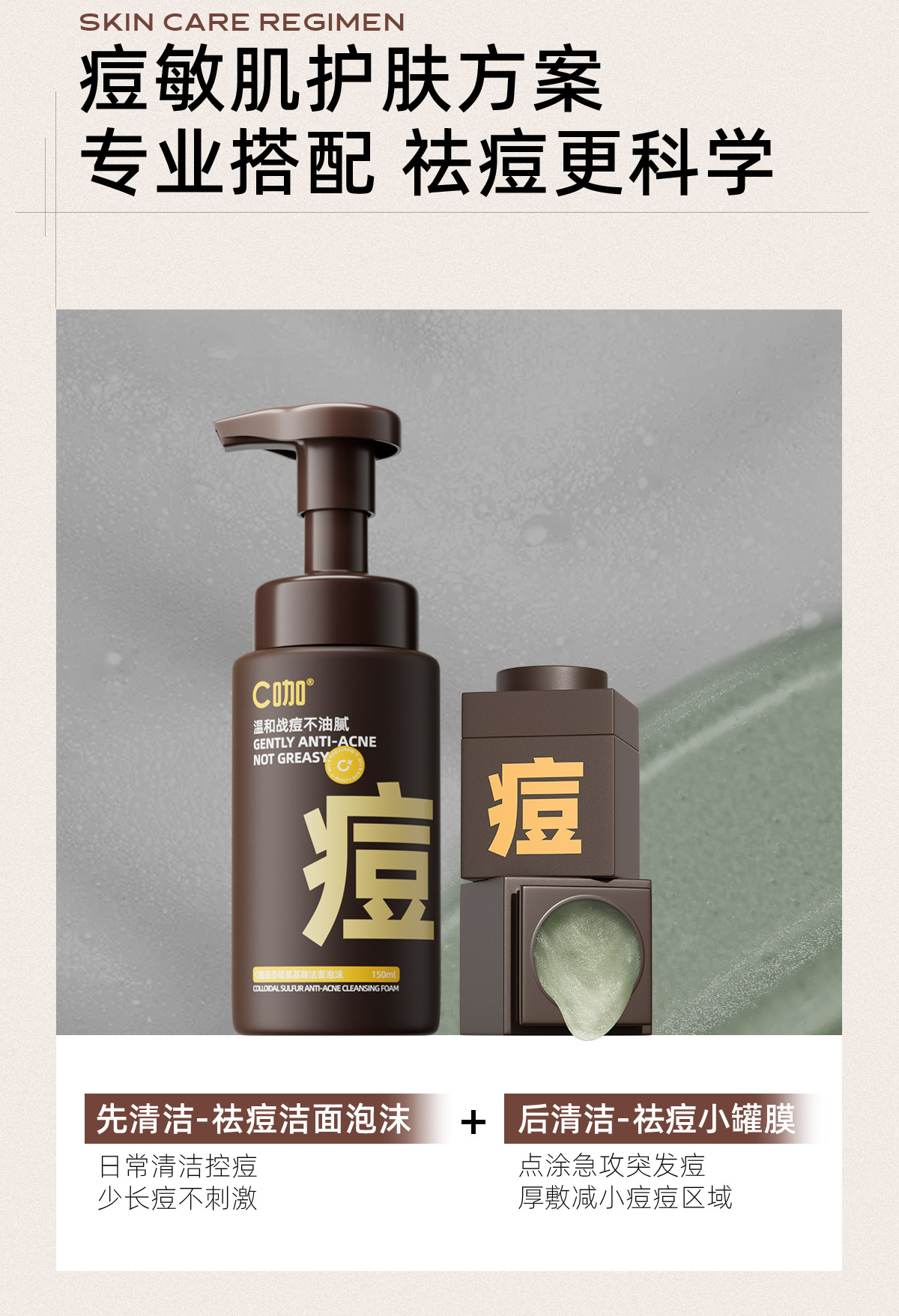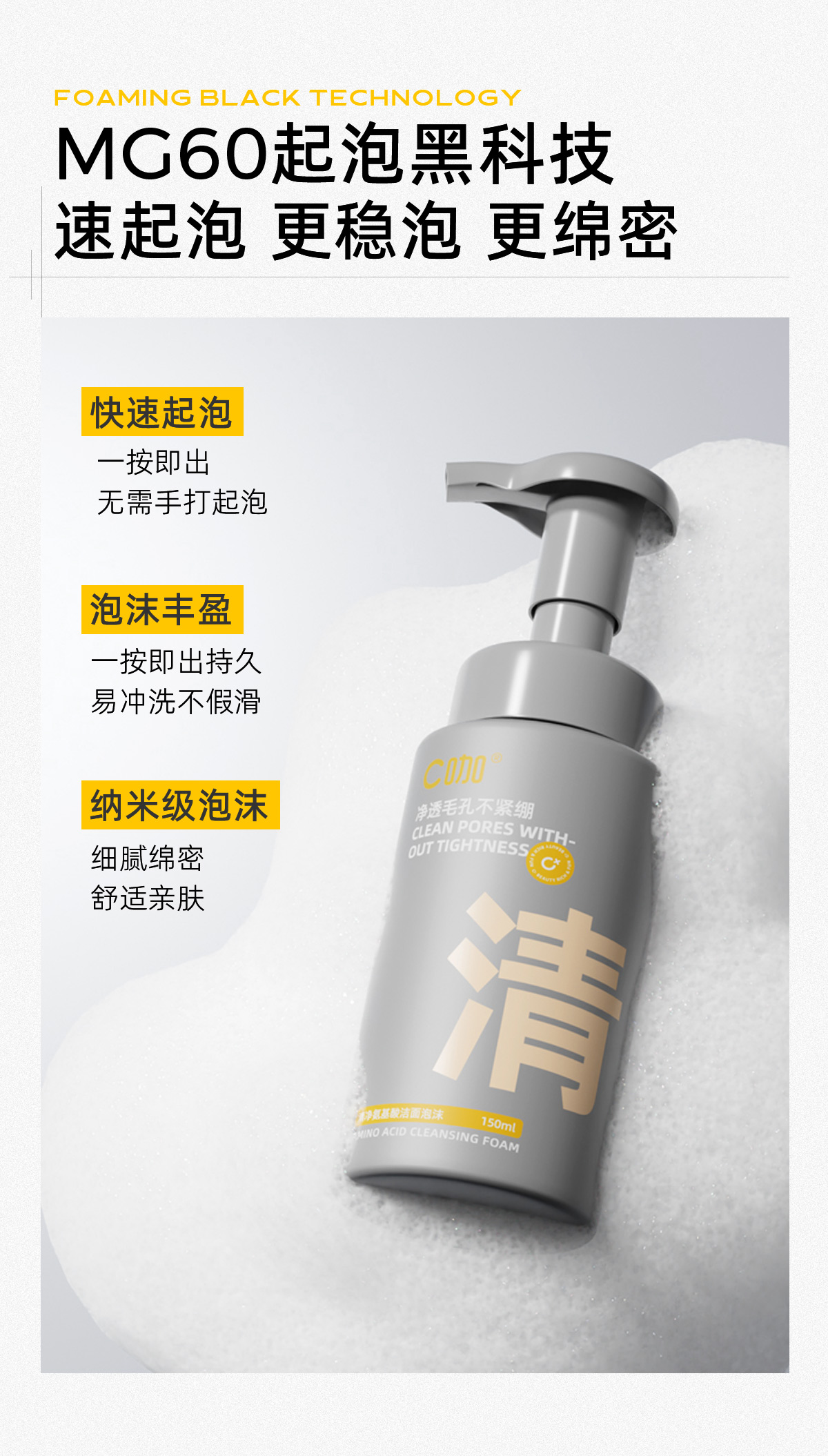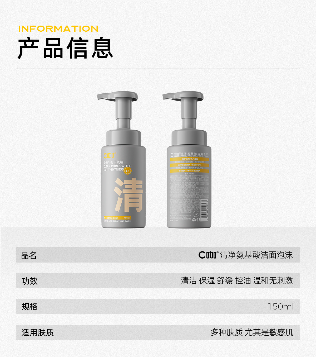 C咖 C咖氨基酸泡沫洗面奶清洁祛痘保湿控油净痘洁面慕斯 yzh013 150ml*2 混色(单位:组合)