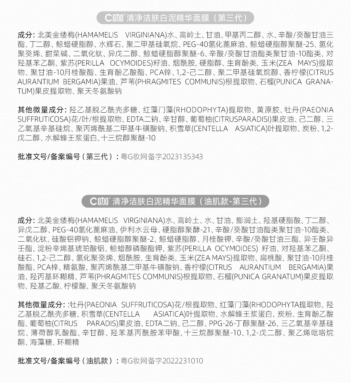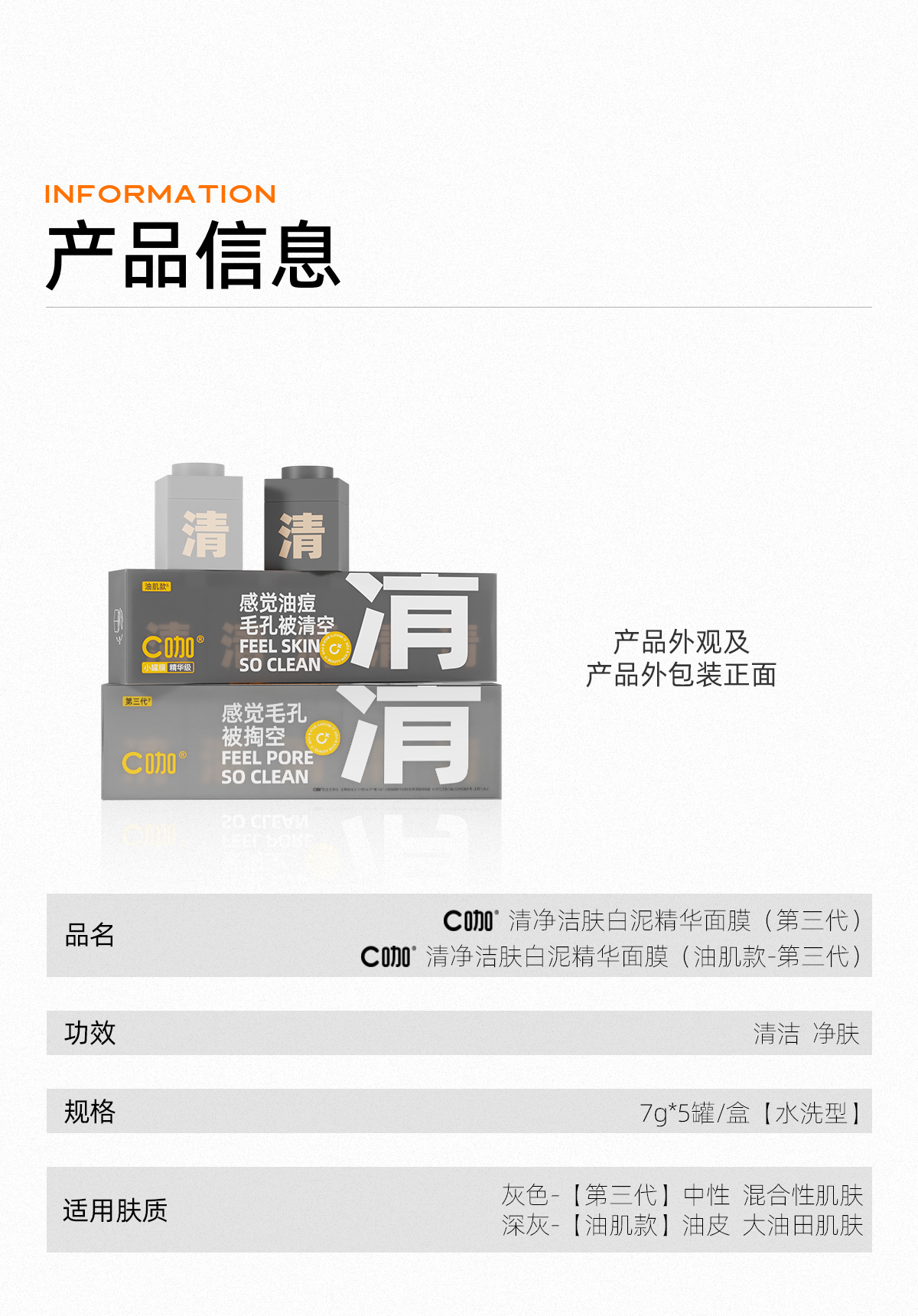 C咖 清洁白泥膜10罐深层控油补水面膜去黑头角质涂抹式小罐膜 yzh035 7g*10 混色(单位:组合)