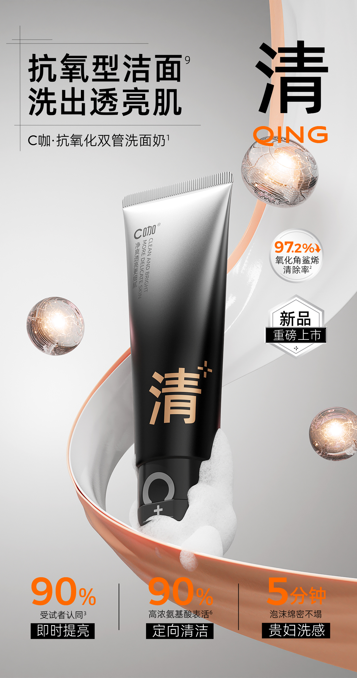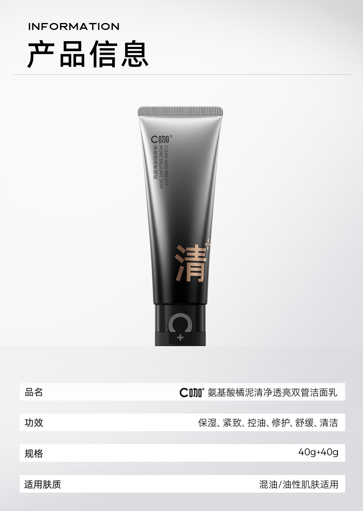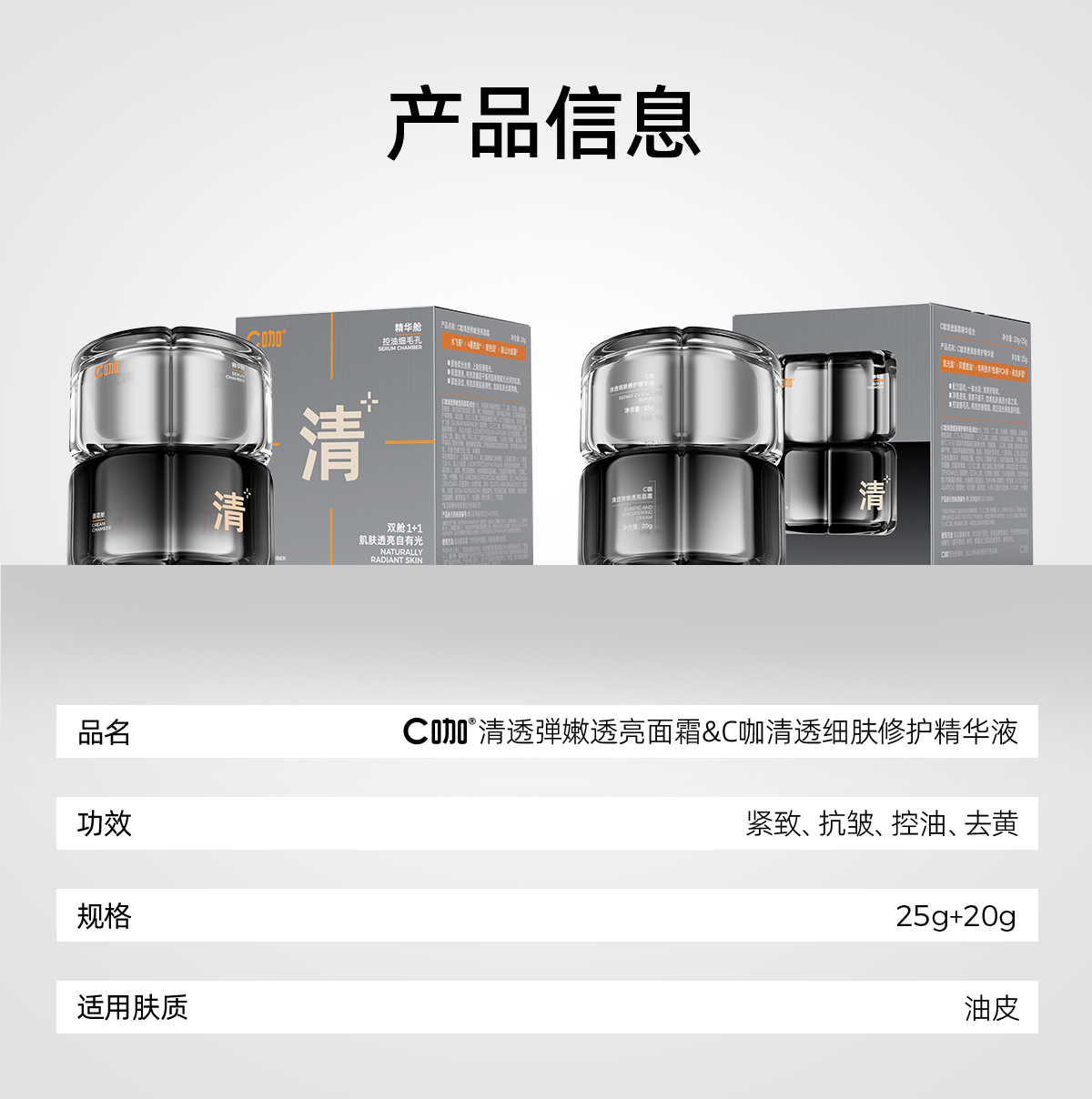 C咖 抗氧祛黄提亮洁面双舱面霜套装改善暗沉补水保湿护肤套装女 yzh047 80g*1,45g*1 混色(单位:组合)