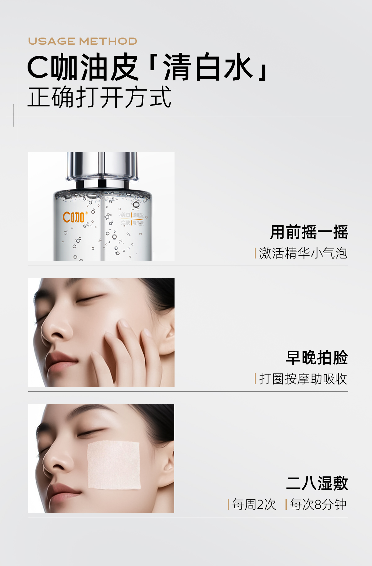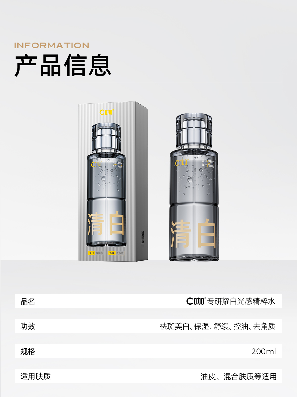 C咖 清白水祛黄提亮美白淡斑补水保湿爽肤水精华水 yzh056 200ml(含小样清白水15ml*1+湿敷巾50片) 混色(单位:件)