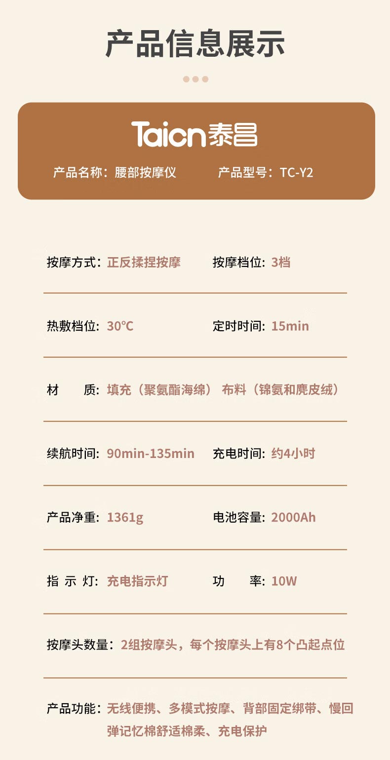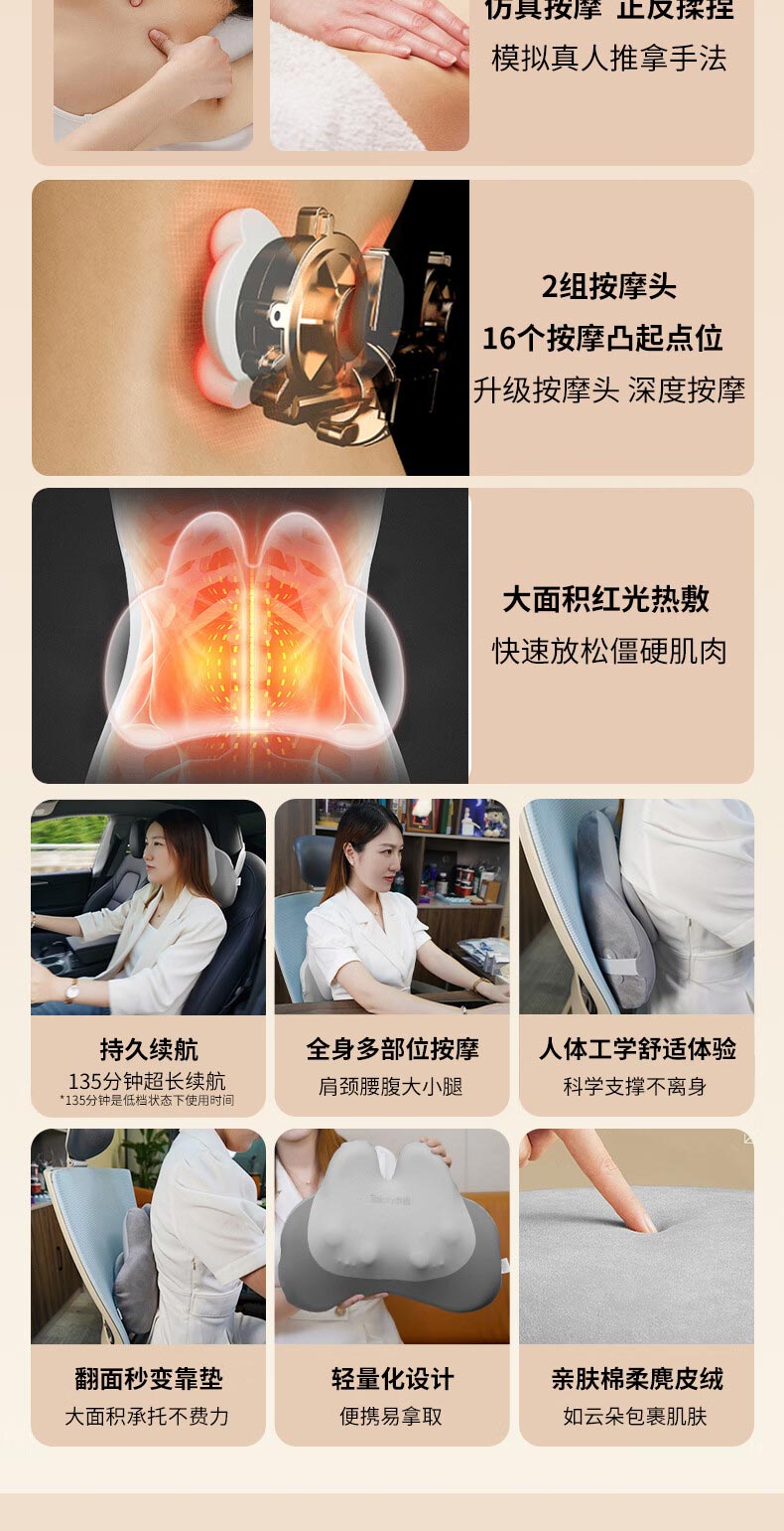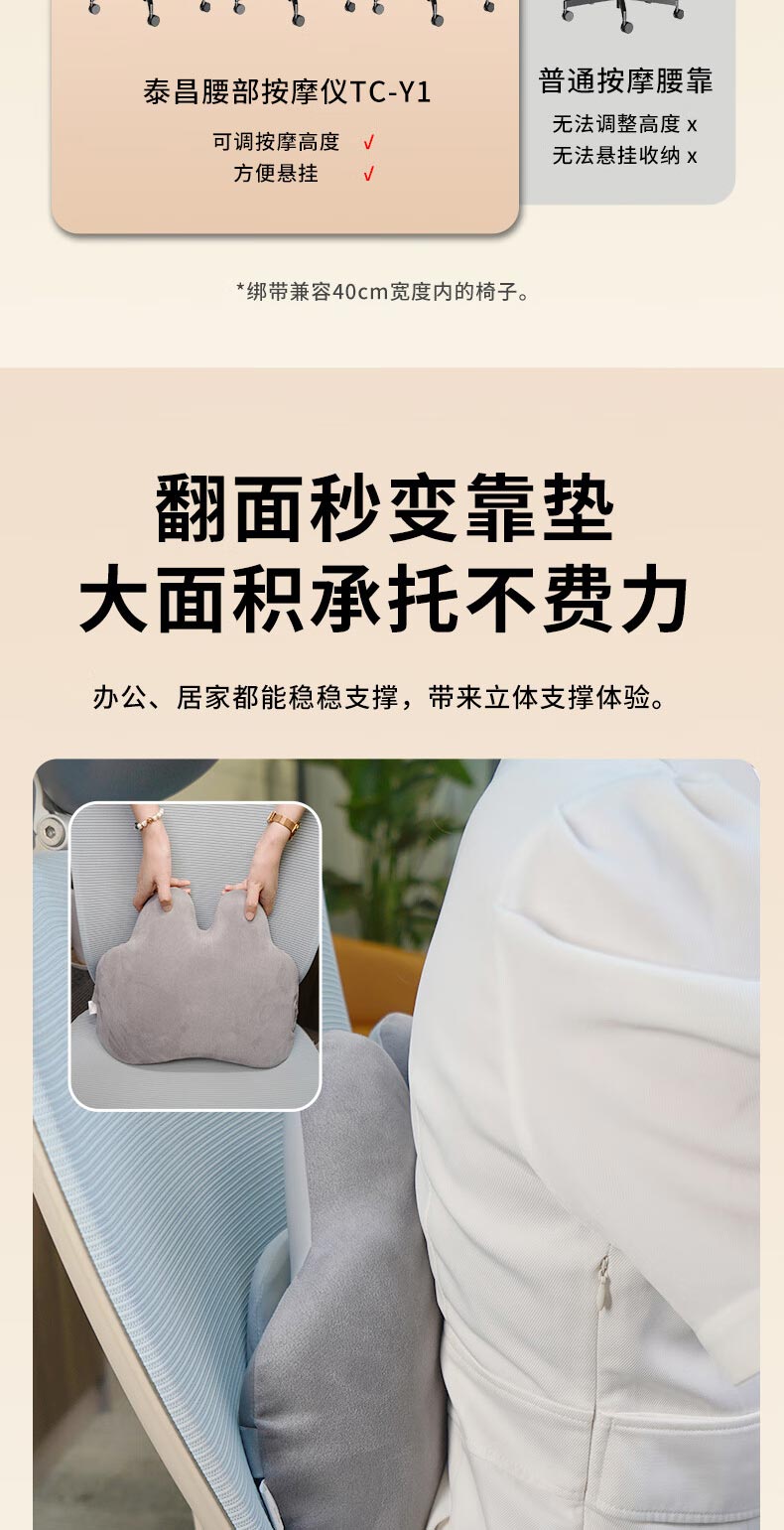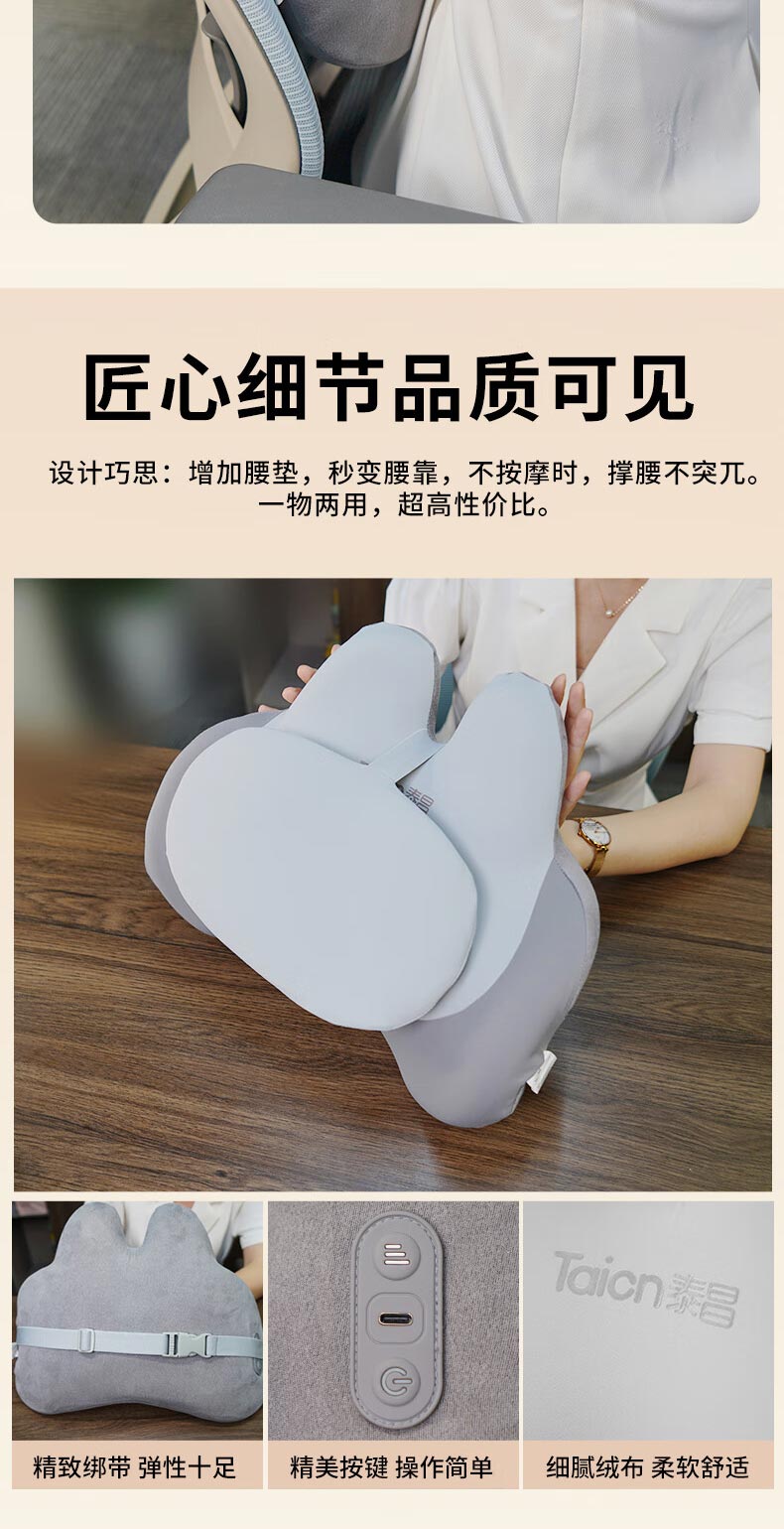 泰昌(Taicn) 腰部按摩仪腰靠2合1灰色 升级版 TC-Y2 灰色(单位:个)