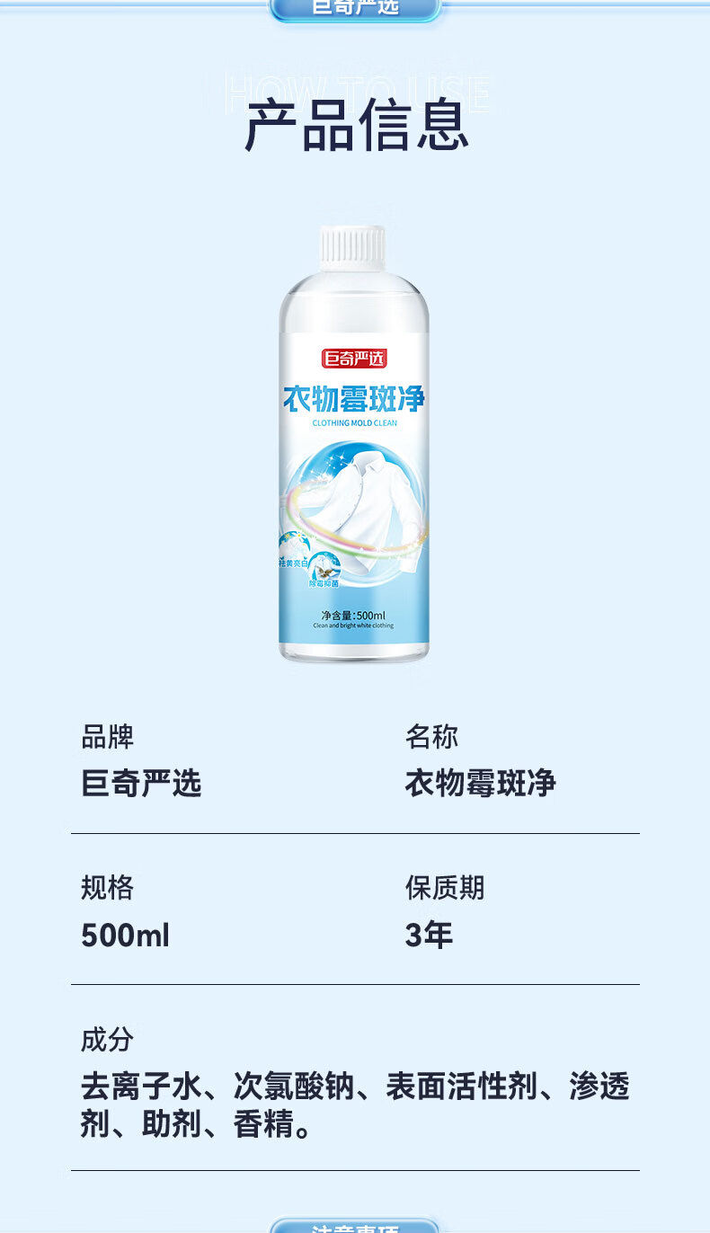 巨奇(JUQI) 衣物霉斑清洁剂 500ml 500ml*2瓶 蓝色(单位:套)