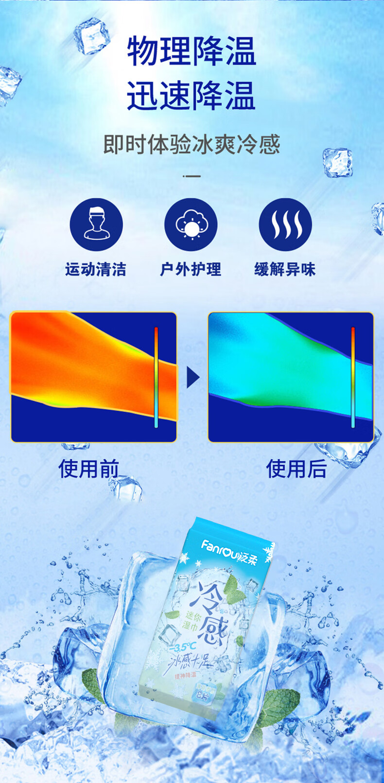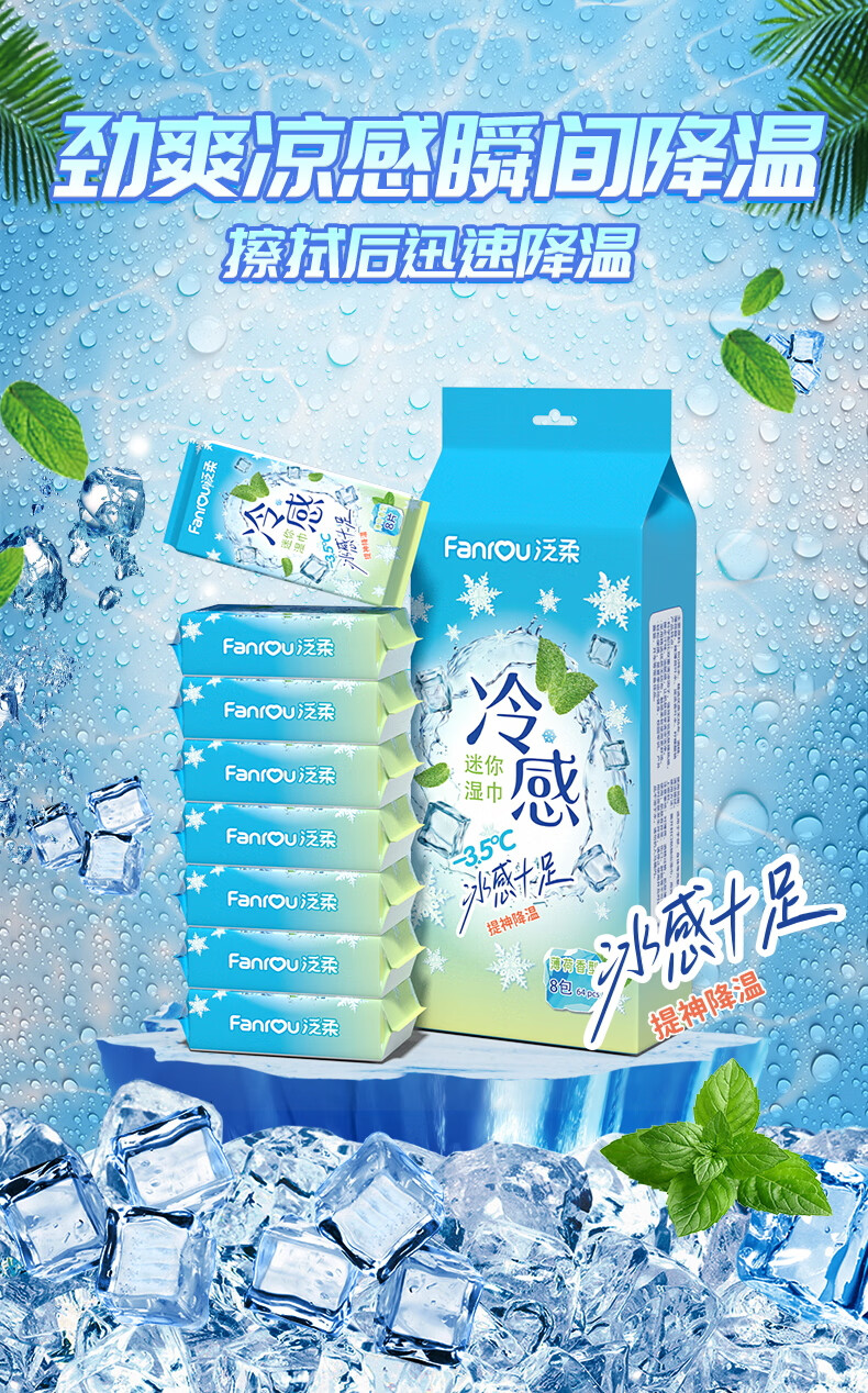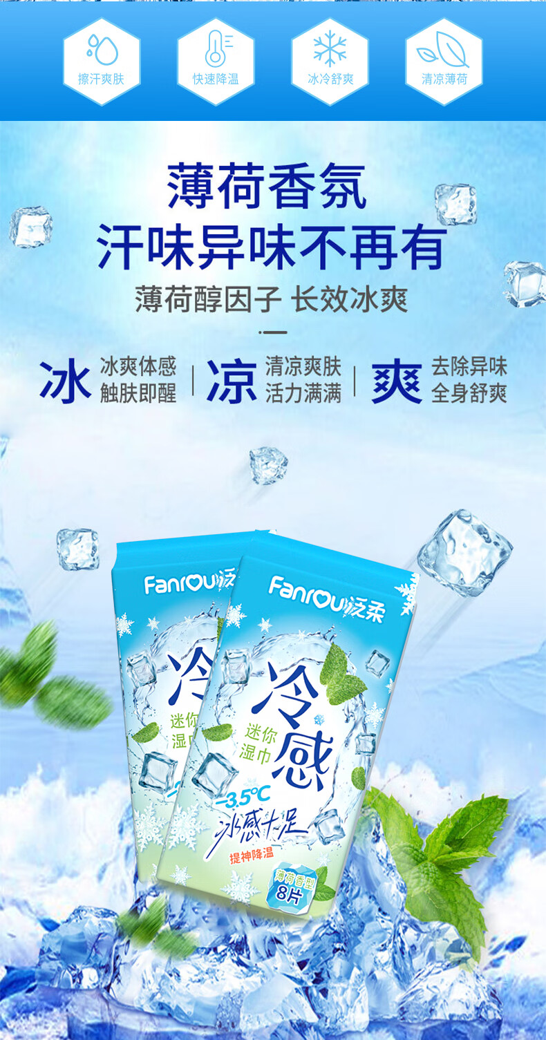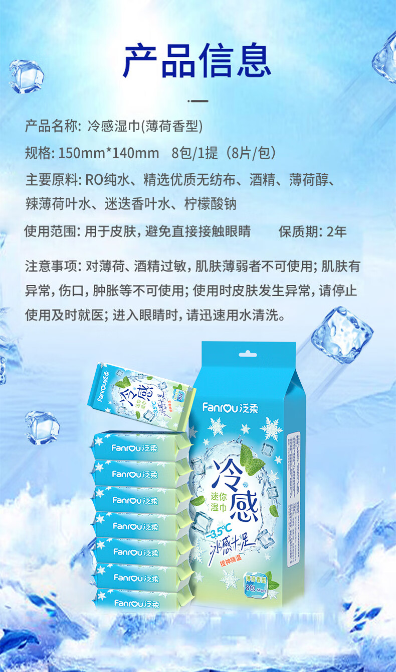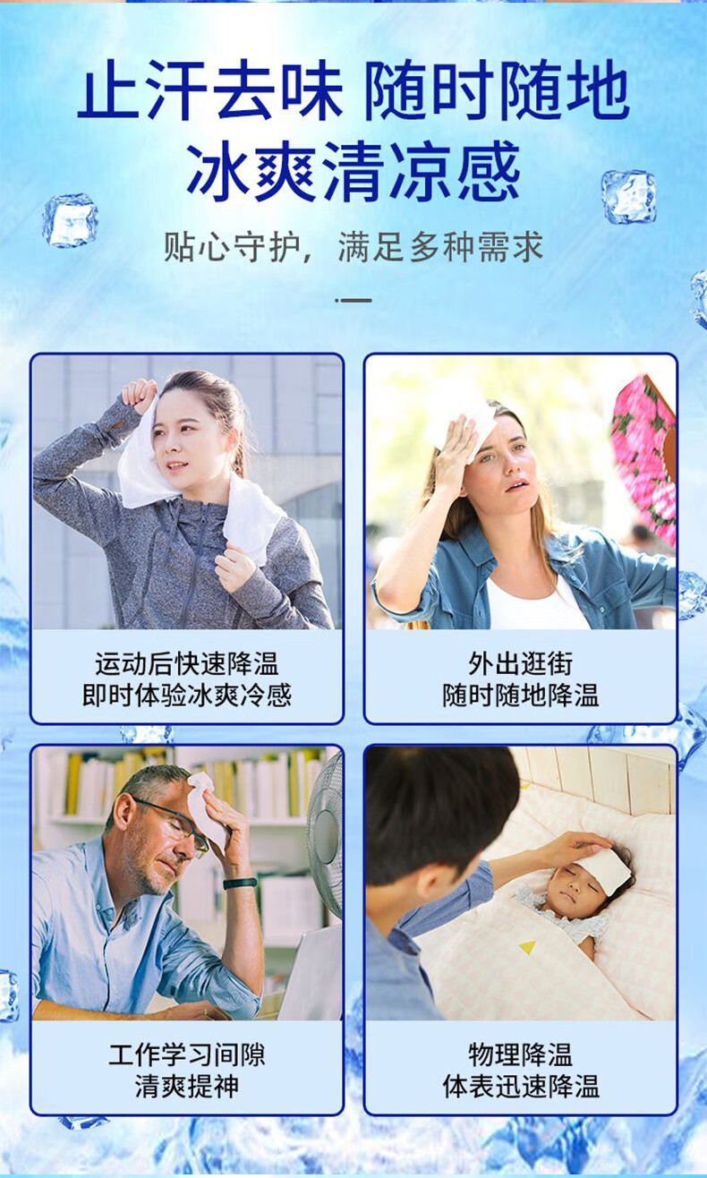 巨奇(JUQI) 薄荷味冷感降温湿巾 户外防暑 8片/包*8包 天蓝色(单位:套)