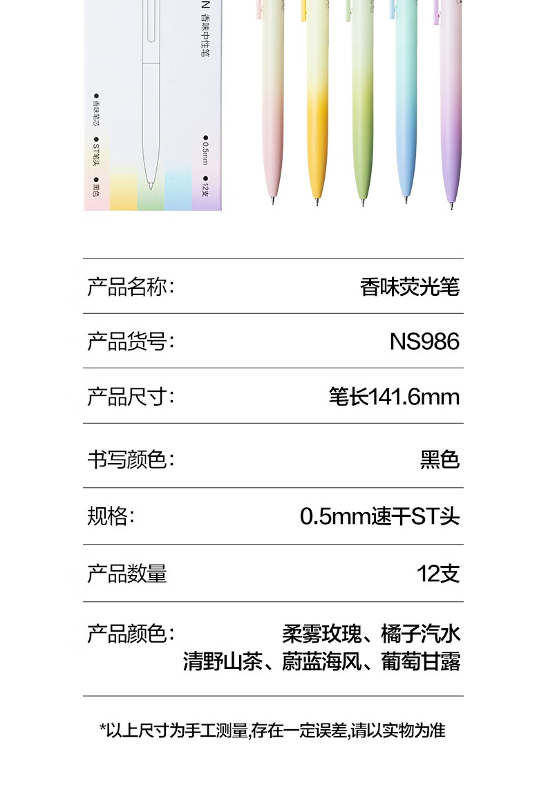 得力(deli) 纽赛香味墨水速干按动中性笔 NS986 12支 0.5mm 黑色(单位:盒)