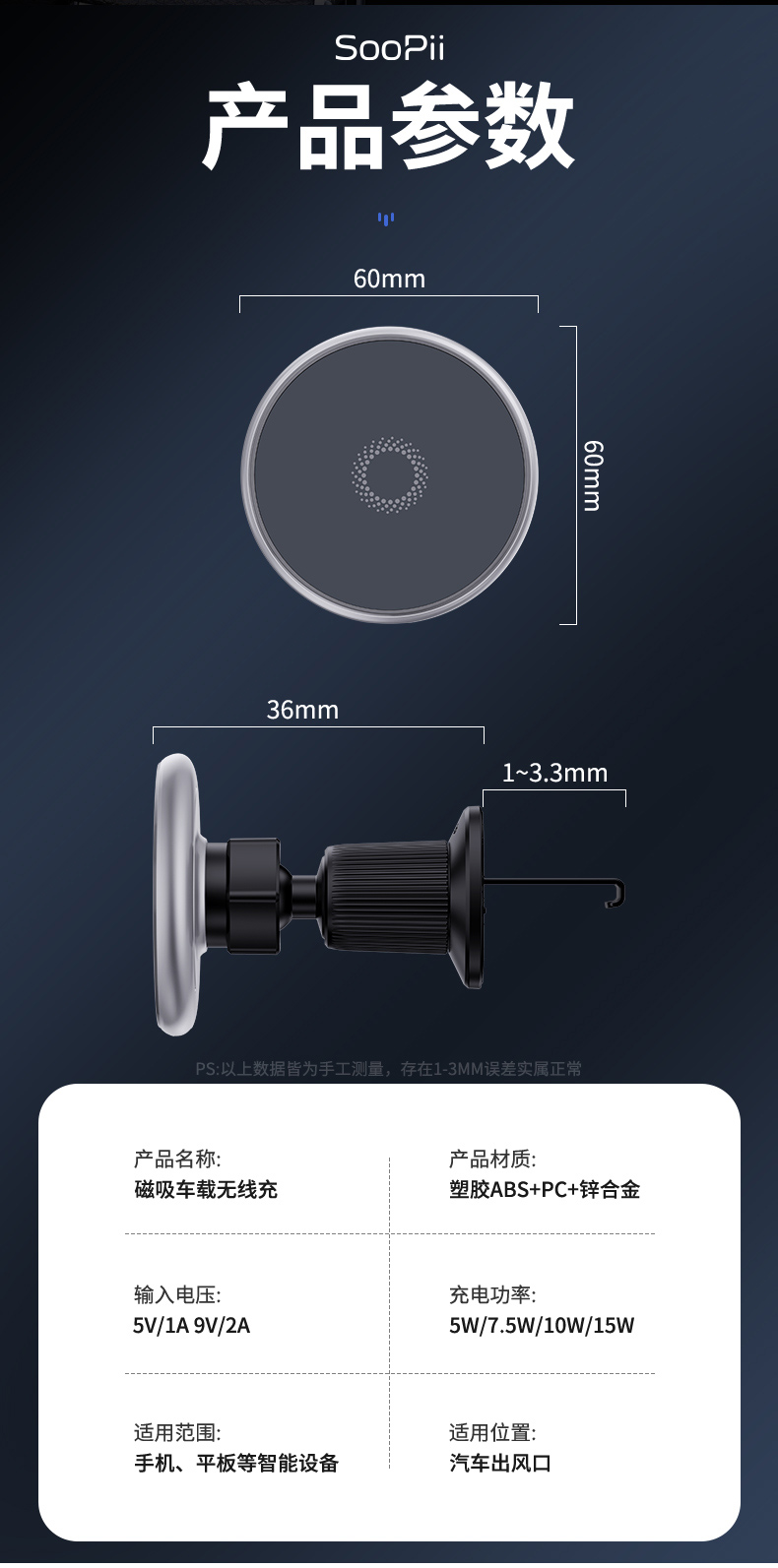 首佩(SOOPII) 磁吸支架 WR10 / 黑色(单位:个)