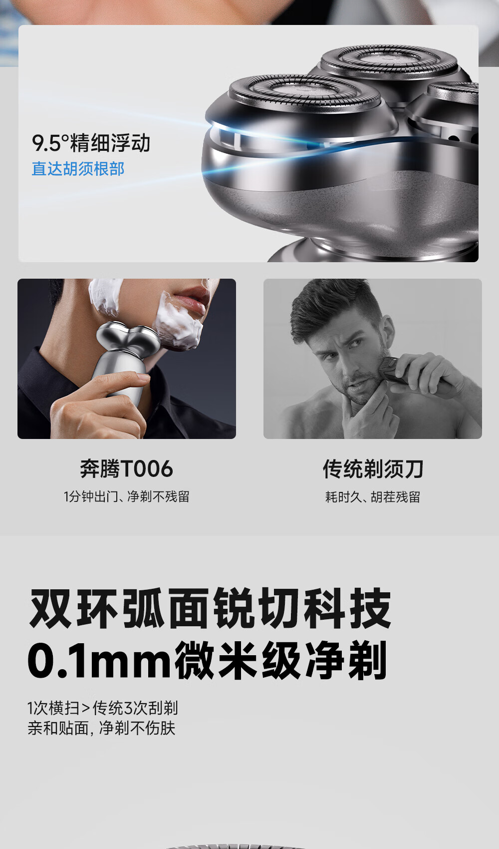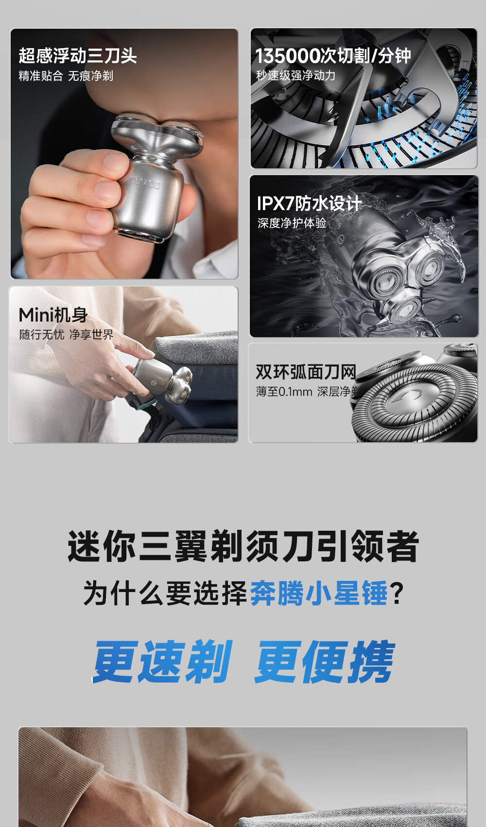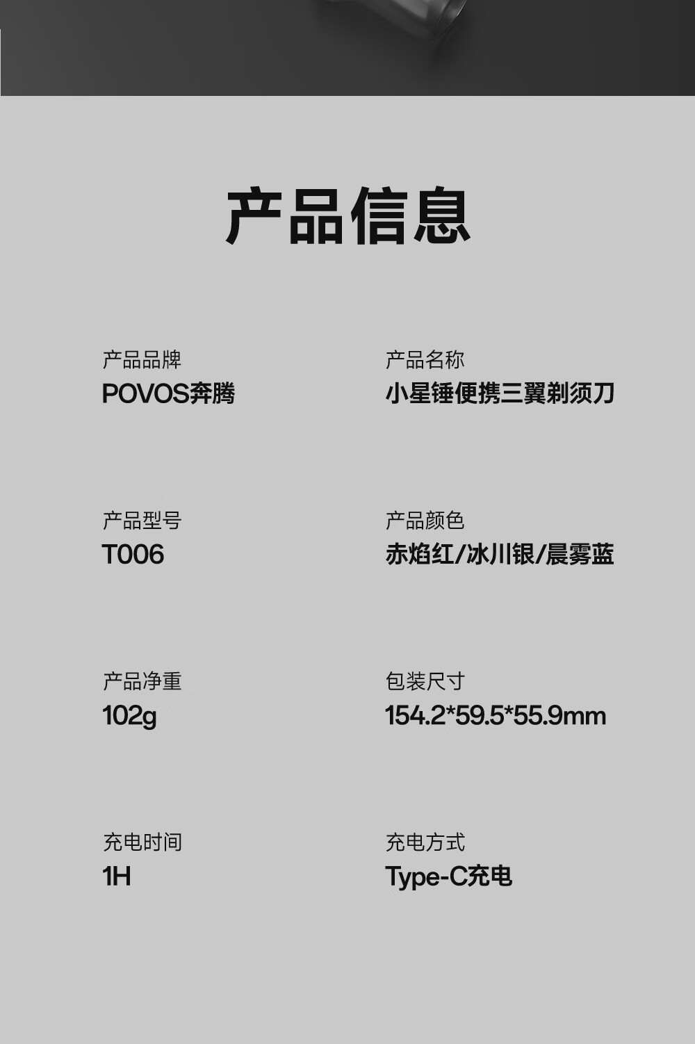 奔腾(POVOS) 智能感应剃胡刀 T006 机身102g 晨雾蓝(单位:个)