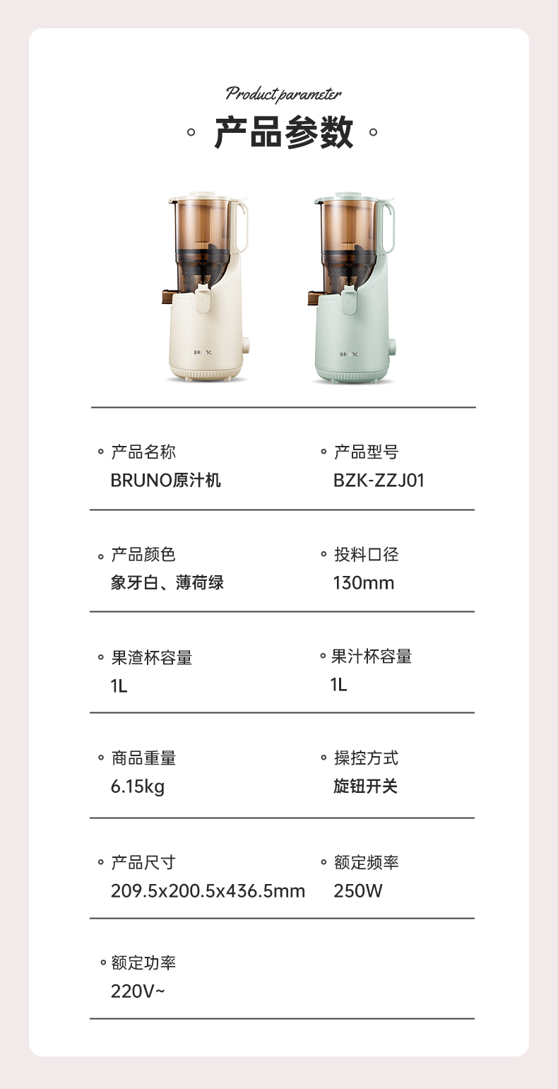BRUNO 原汁机 BZK-ZZJ01-WH 容量:1L 白色(单位:台)