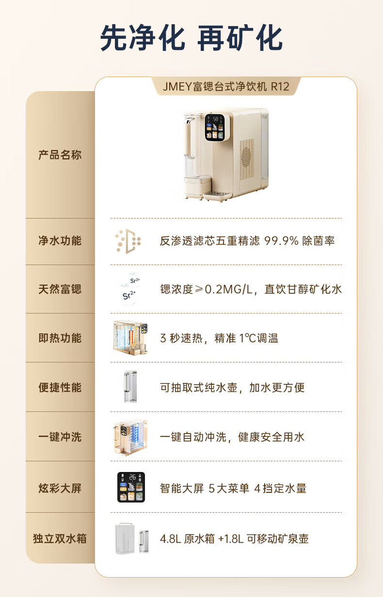 集米(jmey) 台式净饮即热水机R12 R12 容量1.8L 白色(单位:台)