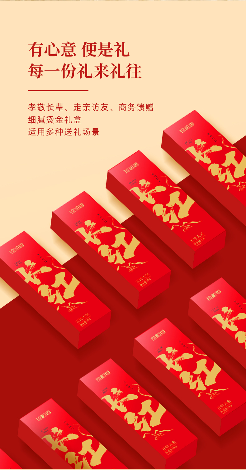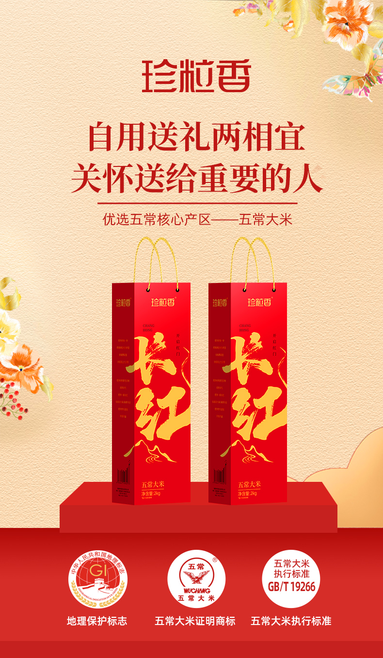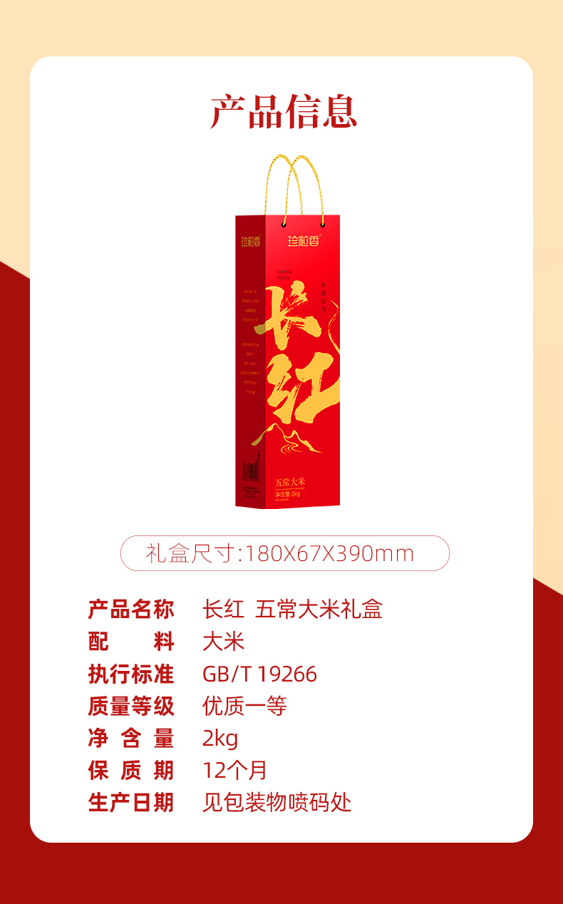 珍粒香 优选产区稻花香 长红五常大米礼盒 2kg 红色(单位:盒)