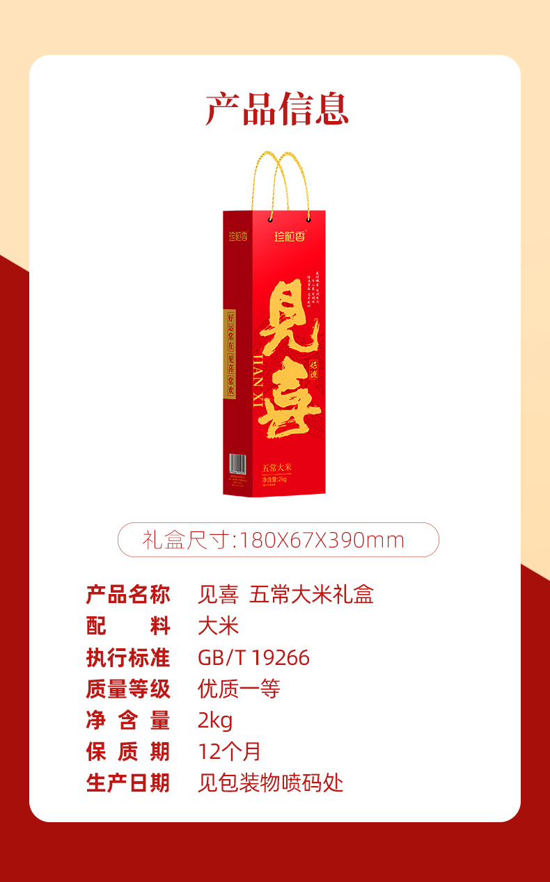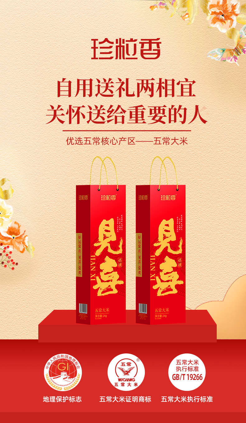 珍粒香 优选五常产区稻花香 见喜五常大米礼盒 2kg 红色(单位:盒)