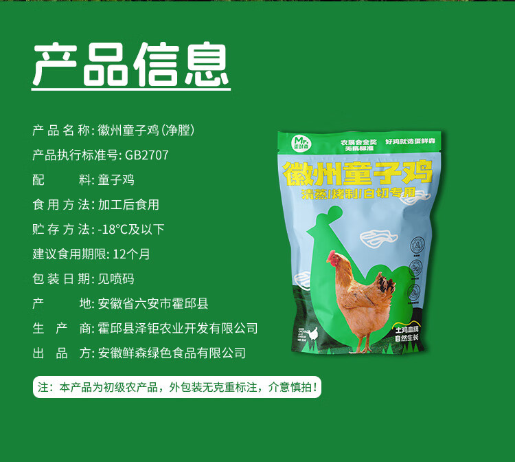 蛋鲜森 蛋鲜森无抗徽州童子鸡1000g装1只装/2只装 ZH137 1000g±100g/只*1只 无色(单位:只)
