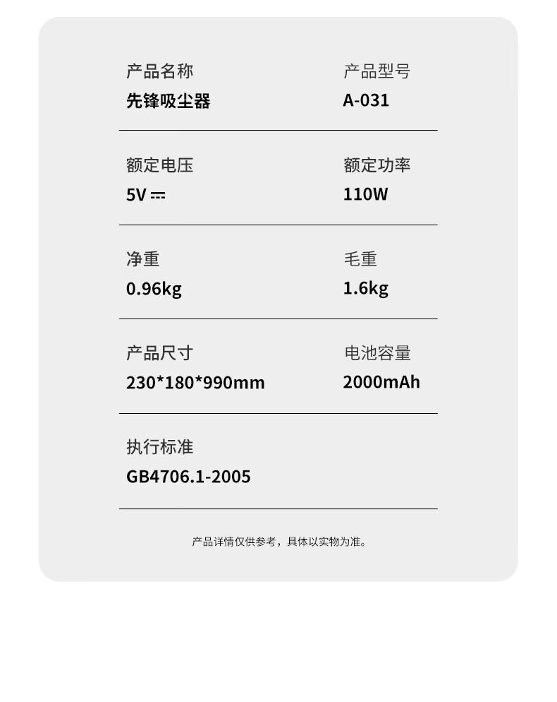 先锋(SINGFUN) 家用吸尘器 A-031 110W 白色(单位:台)