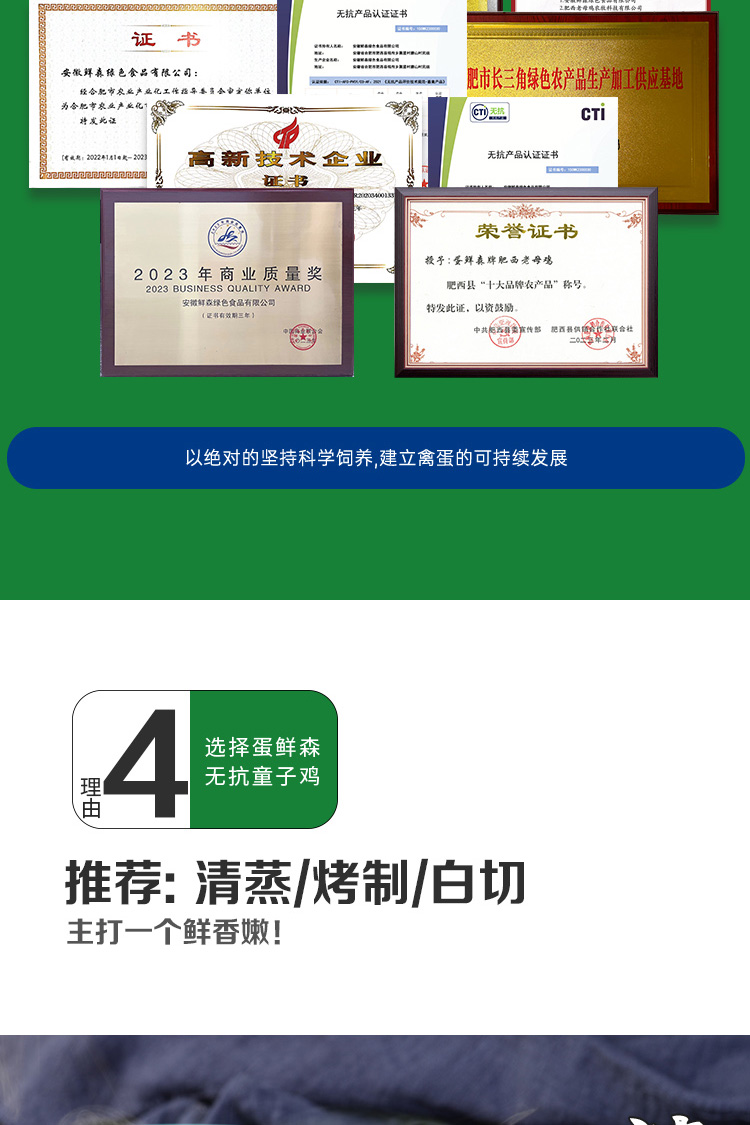 蛋鲜森 徽州童子鸡900g3只装 ZH695 900g*3只装 无色(单位:份)