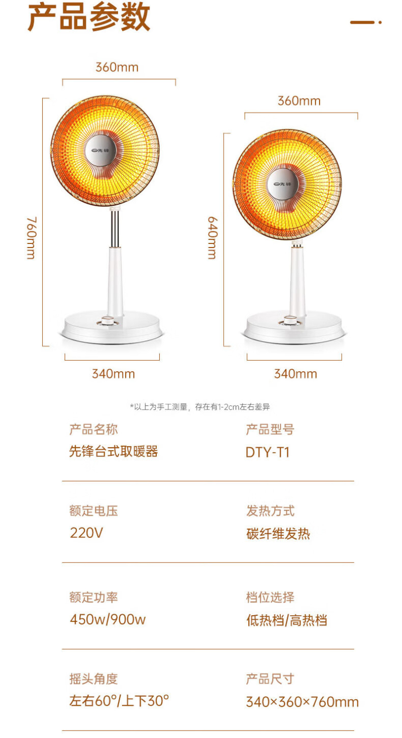 先锋(SINGFUN) 小太阳 DTY-T1 900W 白色(单位:台)