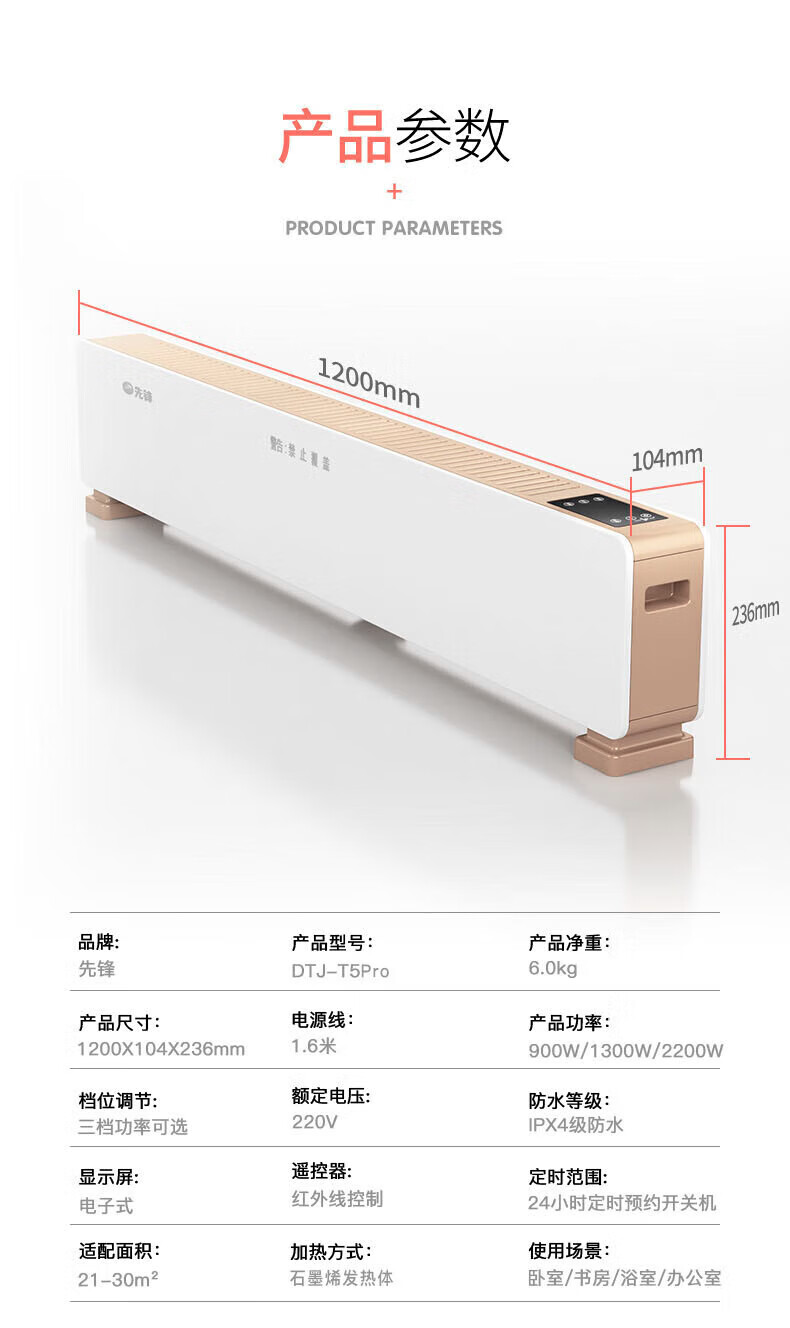 先锋(SINGFUN) 取暖器 DTJ-T5PRO 2200W 白色(单位:台)