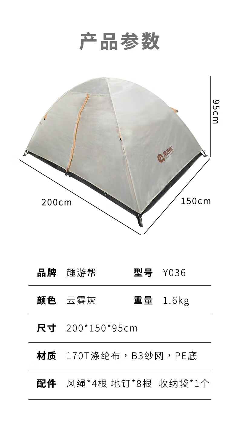 趣游帮 双层防蚊防晒多用帐篷(Y036) Y036 200*150*95cm 无色(单位:顶)