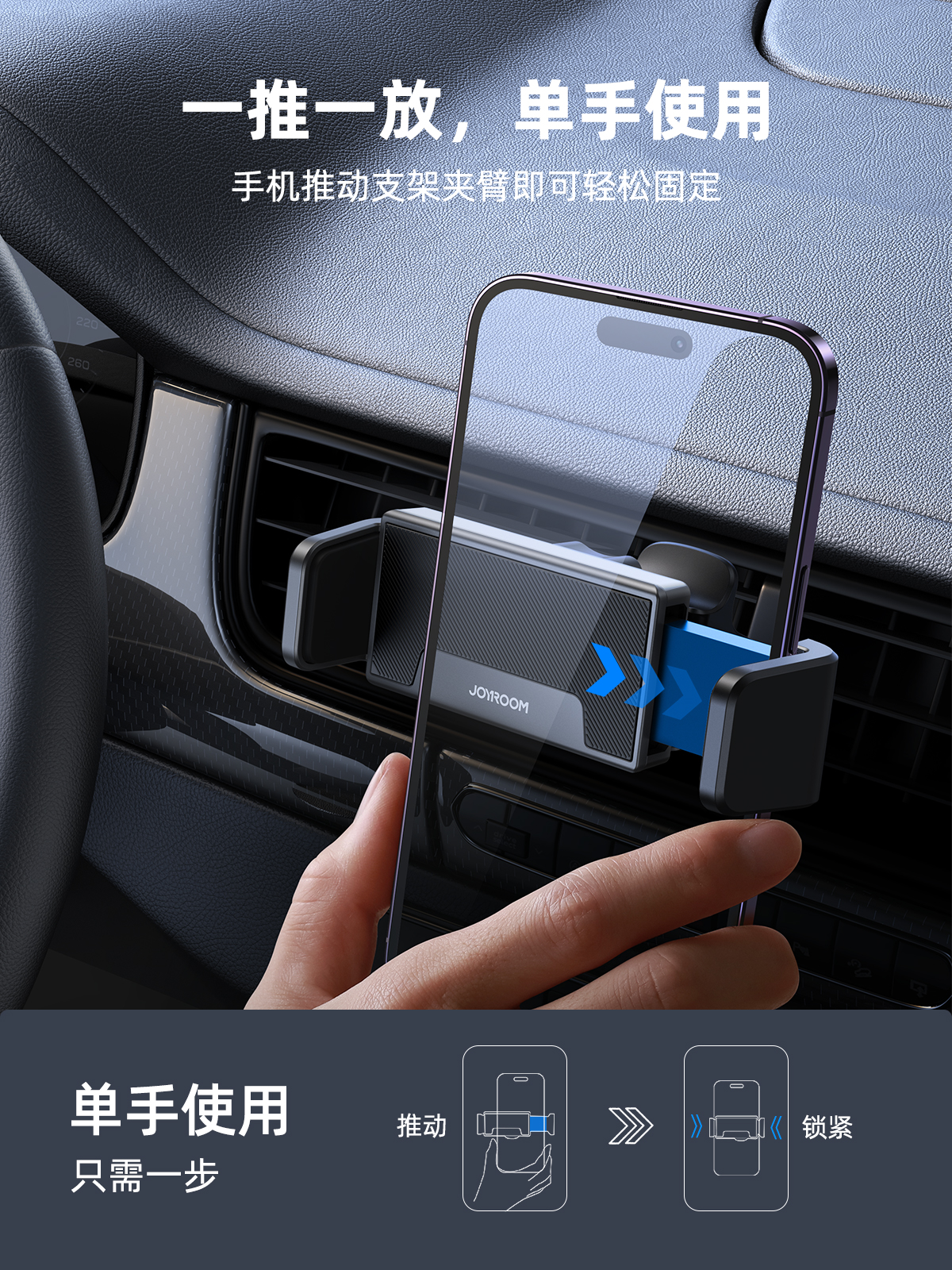 机乐堂(JOYROOM) 拉夹式车载支架出风口款 JR-ZS377 JR-ZS377 适用4.5-6.7英寸手机 黑色(单位:个)