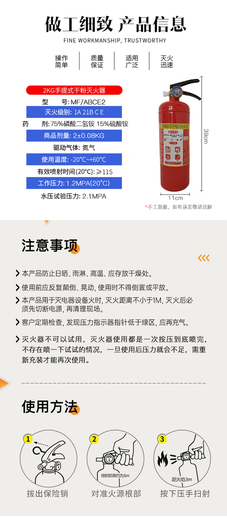 唐安(TANGAN) 手提式干粉灭火器 2公斤 MF/ABCE2 390*110mm 红色(单位:瓶)