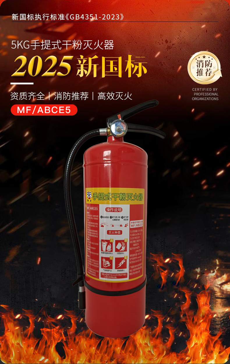 唐安(TANGAN) 手提式干粉灭火器 5公斤 MF/ABCE5 540*140mm 红色(单位:瓶)