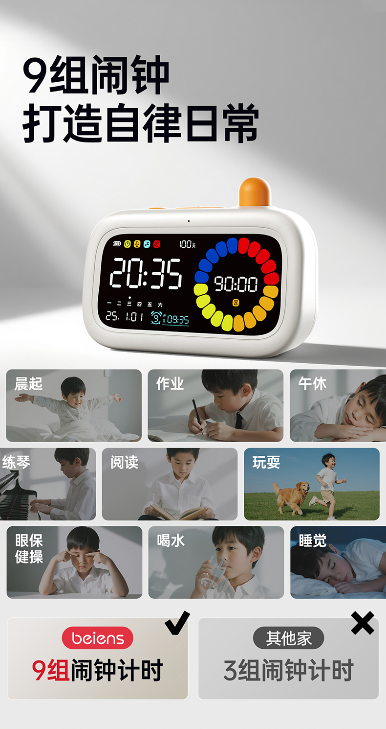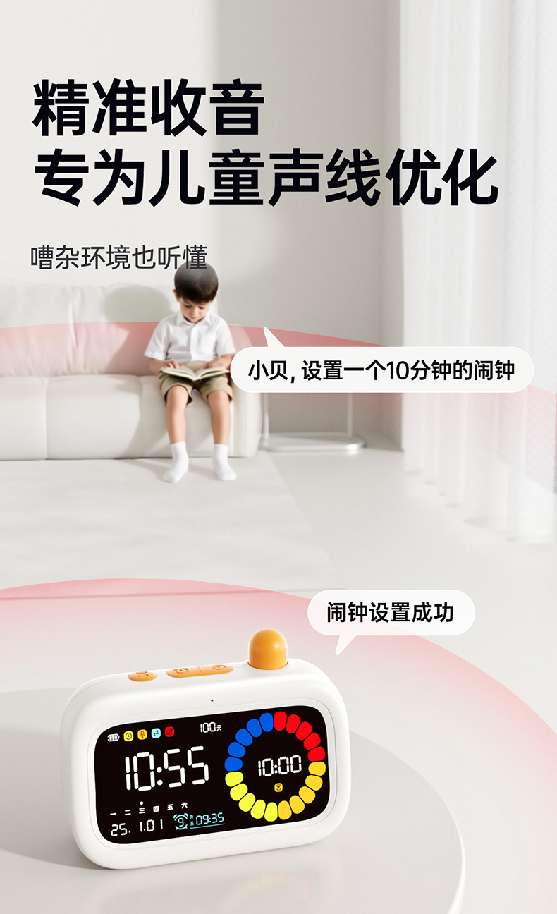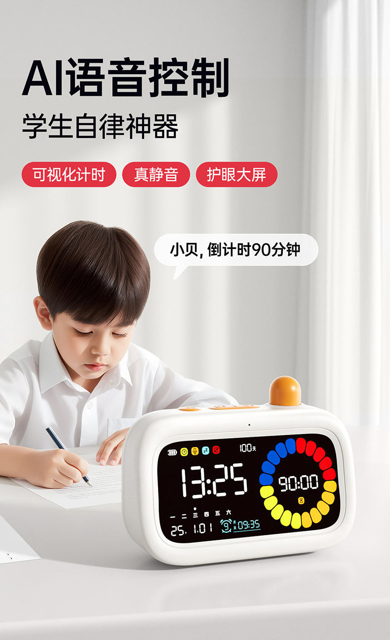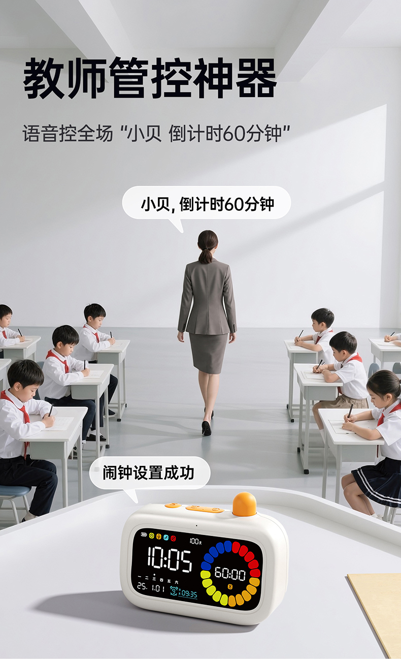 贝恩施 AI智能语音时间管理器闹钟 T2 120*44.6*88mm 白色(单位:个)