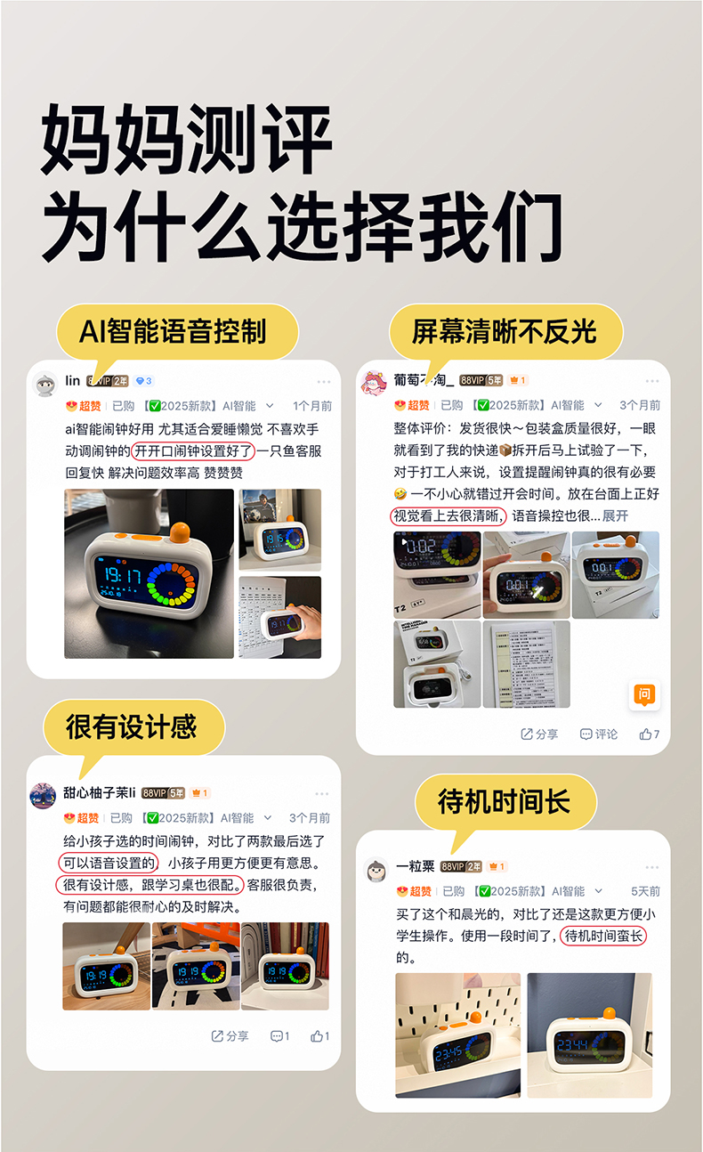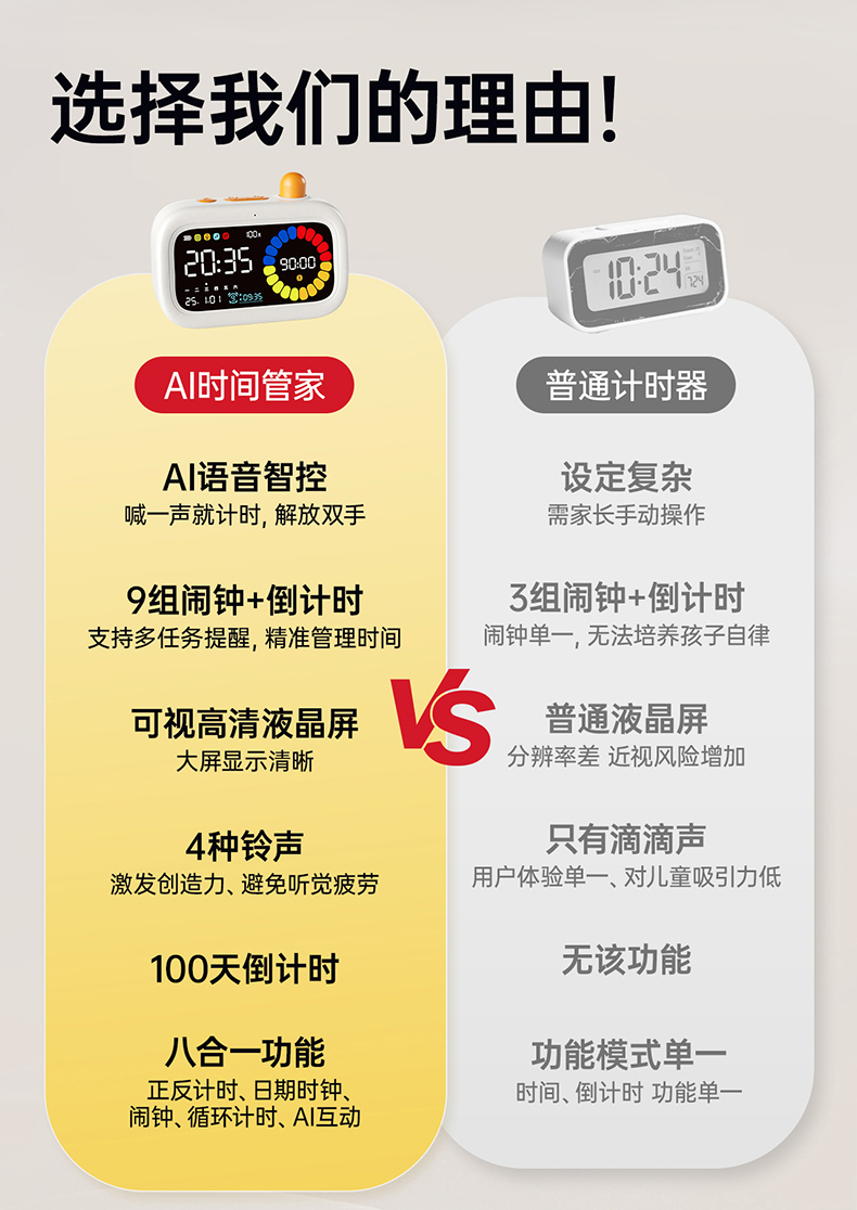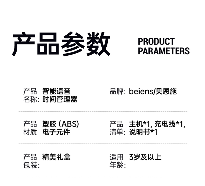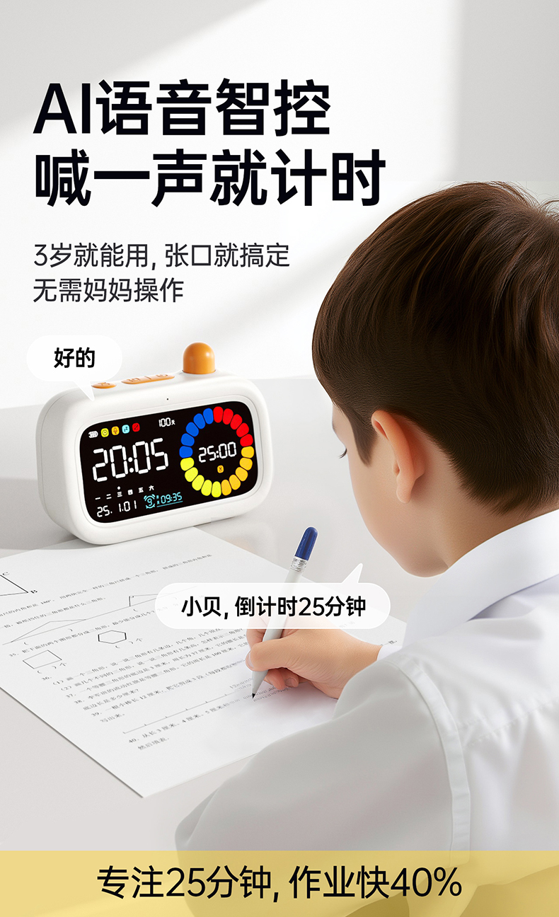 贝恩施 AI智能语音时间管理器闹钟 T2 120*44.6*88mm 白色(单位:个)