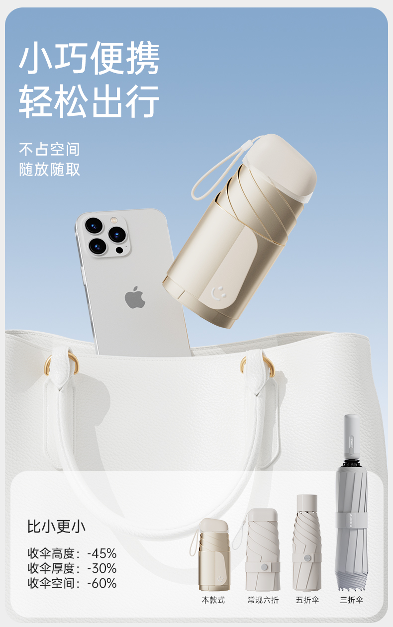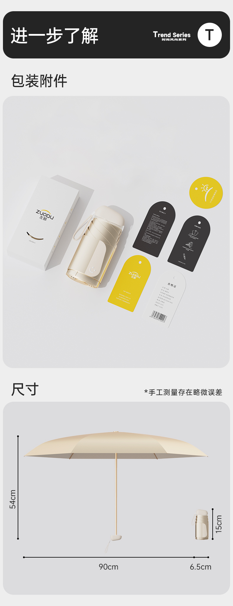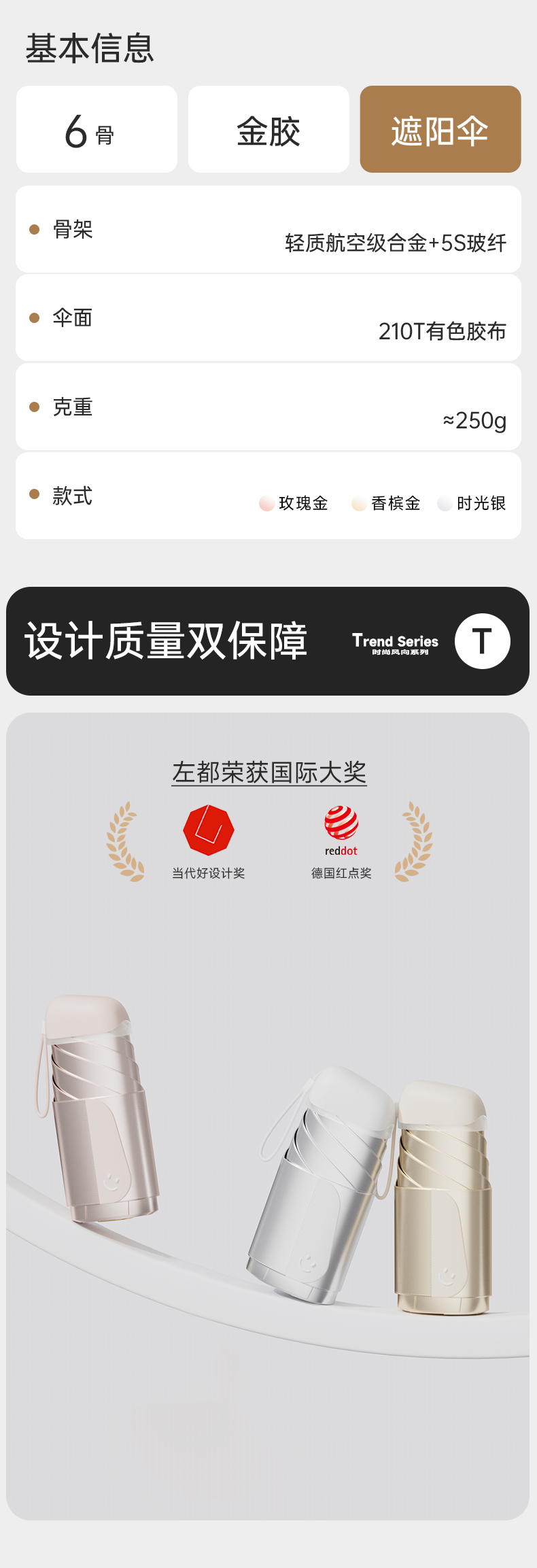 左都(ZUODU) 雨伞 ZD212 45cm*6骨 六折 香槟金(单位:把)