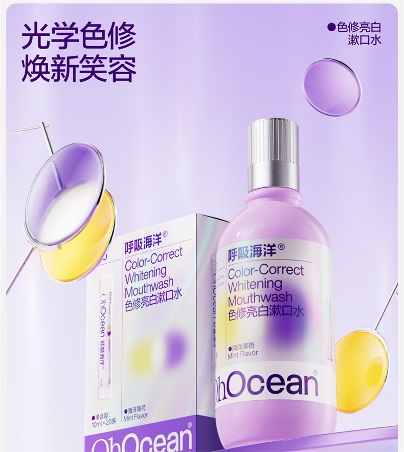 呼吸海洋 色修美白便携漱口水 色修亮白 10m1*20条*2盒 紫色(单位:组)