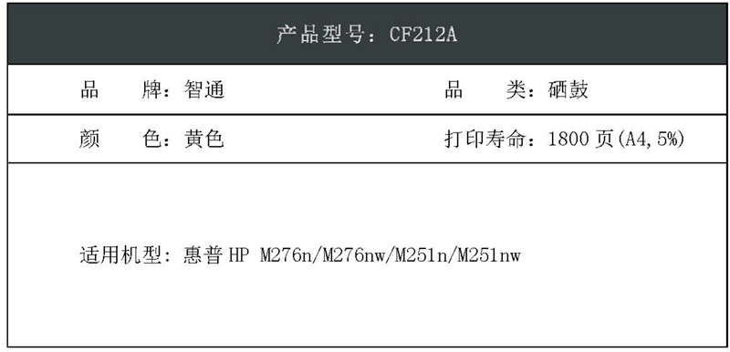 智通(ZT) ZT-CF212A-Y 1800页 适用惠普HP M276n/M276nw/M251n 硒鼓 1.00 只/支 (计价单位:支) 黄色