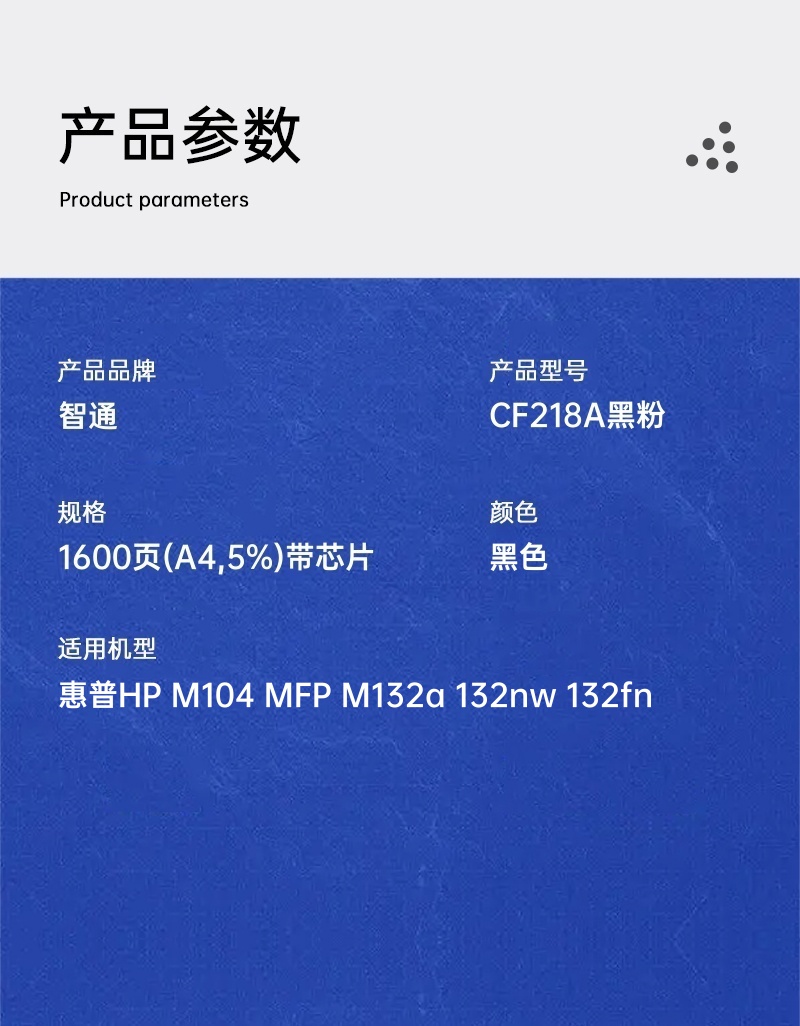 智通(ZT) ZT-CF218A-F 1600页 适用惠普HP M104 MFP M132a 132nw 粉盒 1.00 只/支 (计价单位:支) 黑色