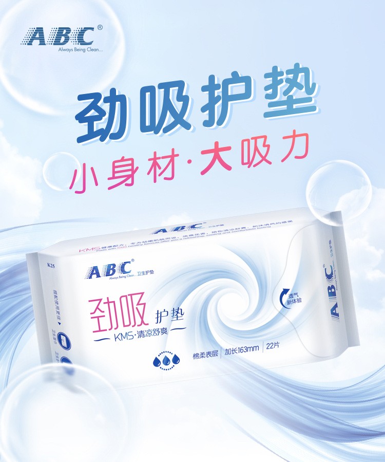 ABC轻薄无感透气干爽棉柔劲吸护垫163mm*22片*5包(单位:组) 拿铁色