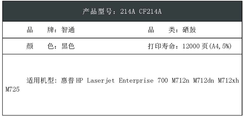 智通(ZT) ZT-CF214A 10000页 适用惠普HP Laserjet Enterprise 700 硒鼓 1.00 只/支 (计价单位:支) 黑色