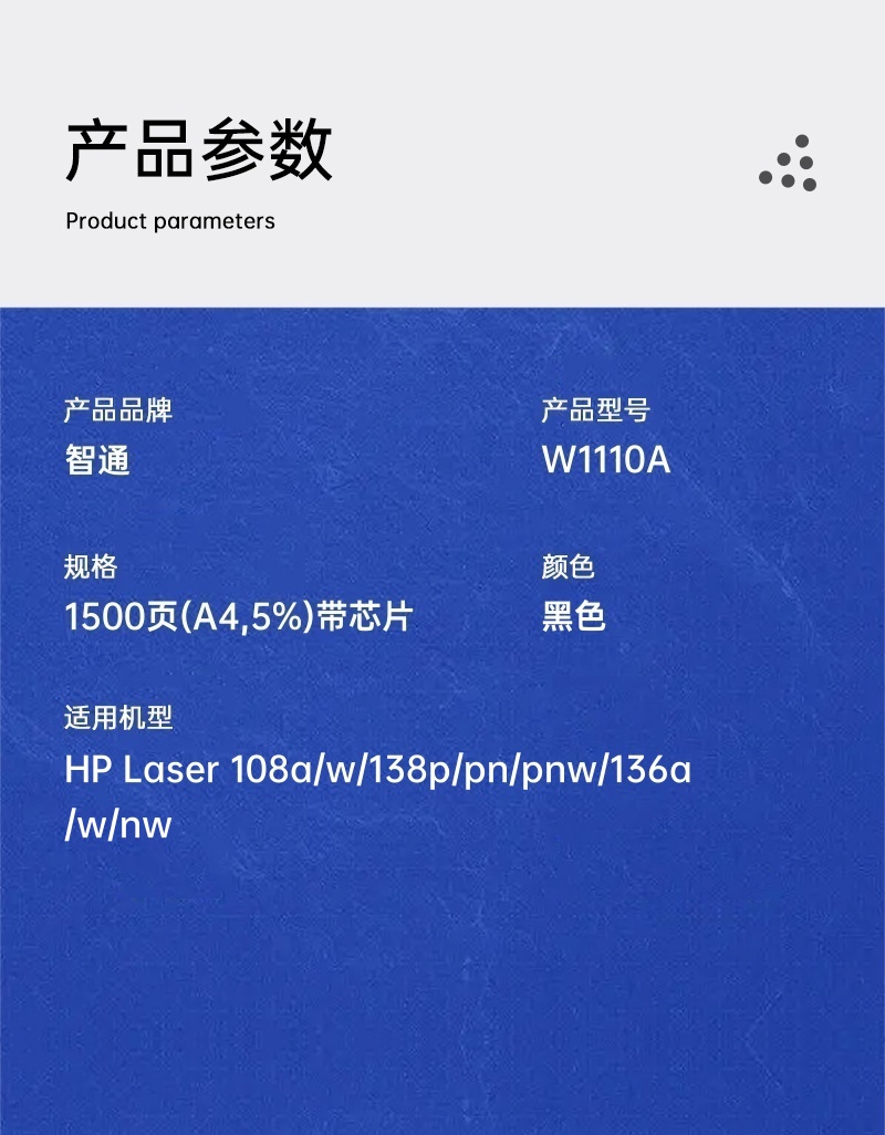 智通(ZT) ZT-W1110A-RE 带芯片 1500页 适用惠普108a 108w 硒鼓 1.00 只/个 (计价单位:个) 黑色