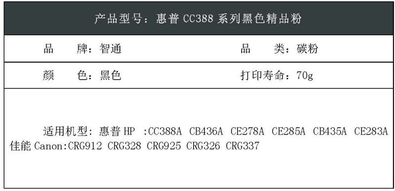 智通(ZT)惠普CC388系列黑色精品粉 碳粉 黑色 70g 适用惠普:CC388A CB436A CE278A 佳能:CRG912 CRG328 CRG925 CRG326 CRG337 黑色