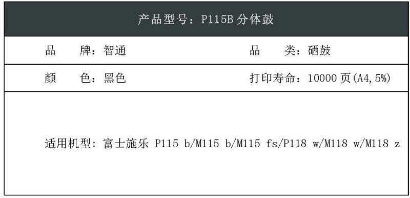 智通(ZT) P115B 10000页 适用富士施乐 P115 b M115 b M115 fs P118 w M118 w M118 z 硒鼓 1.00 只/支 (计价单位:支) 黑色