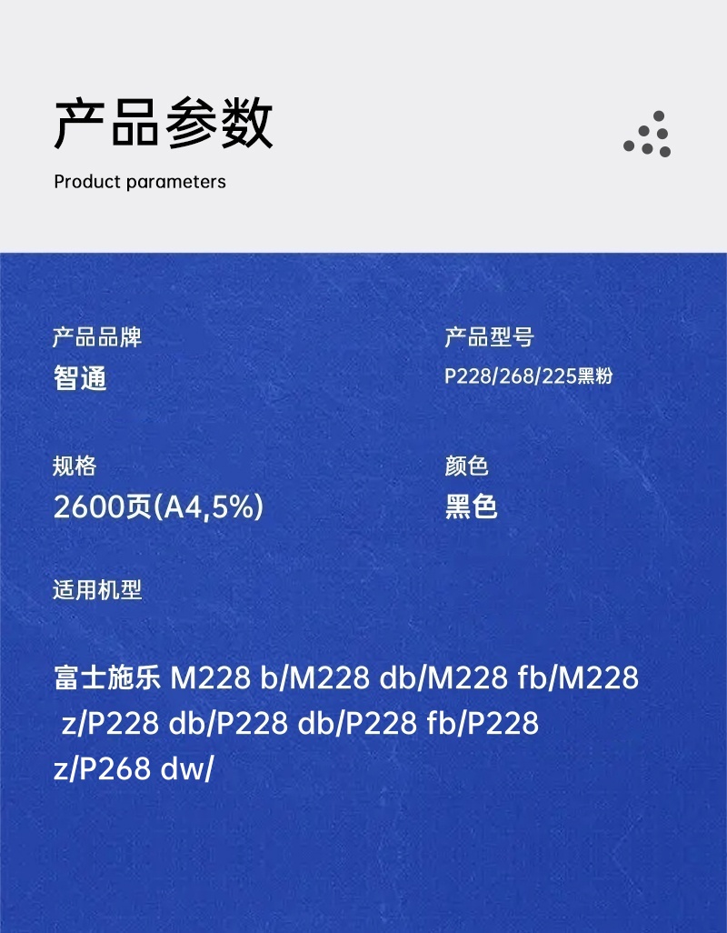 智通(ZT) ZT-P228/268/225-F 2600页 适用富士施乐 M228 b/M228 db/M228 fb 粉盒 1.00 只/支 (计价单位:支) 黑色