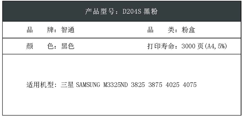 智通(ZT) D204S PLUS版 带芯片 3000页 适用三星SAMSUNG M3325ND 3825 3875 4025 4075 粉盒 1.00 只/个 (计价单位:个) 黑色