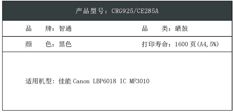 智通(ZT) ZT-925/CE285A PLUS版 打印量1600页 硒鼓 1.00 只/支 (计价单位:支) 黑色