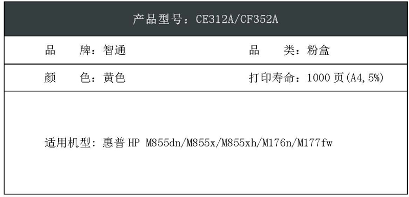 智通(ZT) ZT-CE312A/CF352A-Y-F PLUS版 打印量1000页 粉盒 1.00 只/支 (计价单位:支) 黄色