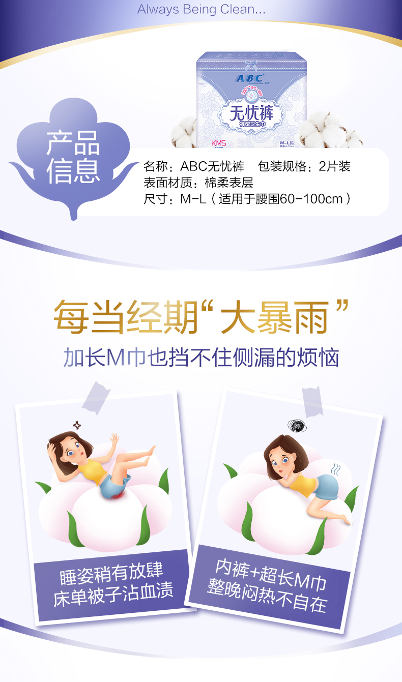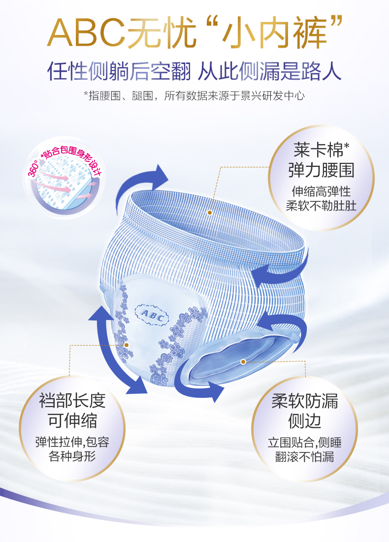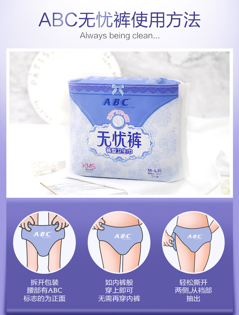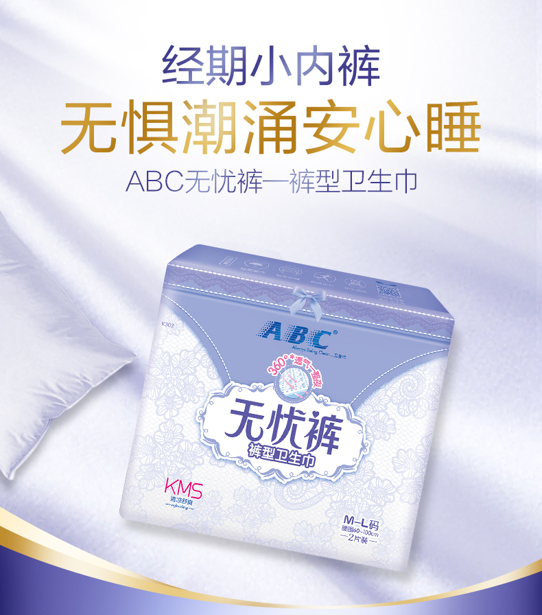 ABC卫生巾透气安睡裤棉柔舒适安心裤超熟睡防侧漏无忧裤M-L码2片*8包(单位:组) 拿铁色