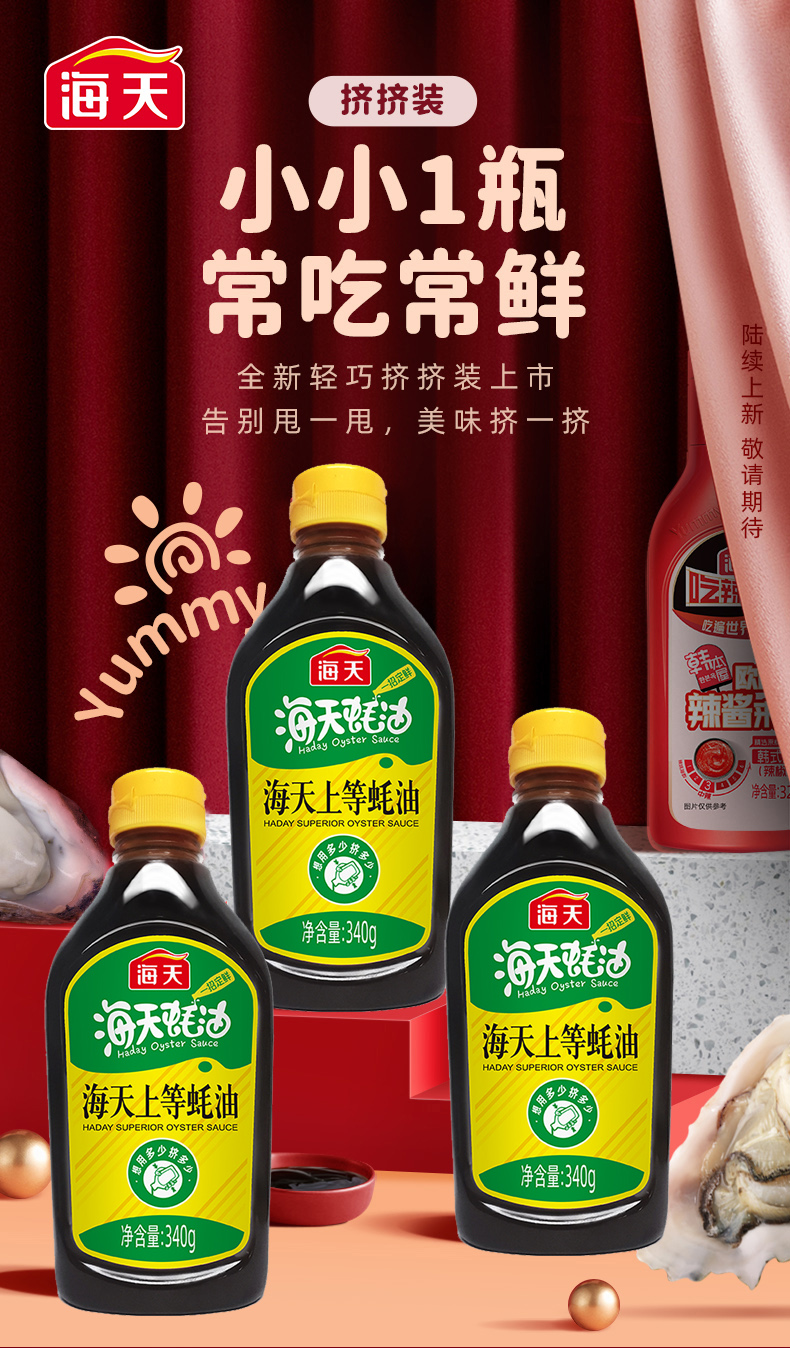 海天上等蚝油挤挤装中华老字号340g*2瓶 红色