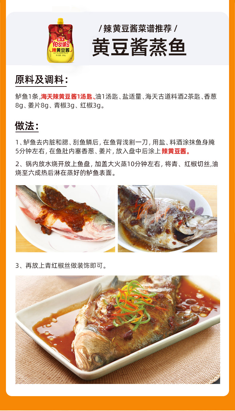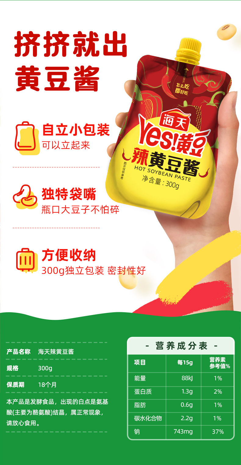 海天辣黄豆酱300g*2袋(挤挤装装)(偏远地区不发货) 混色