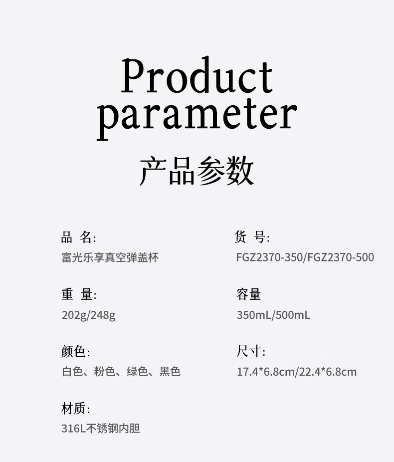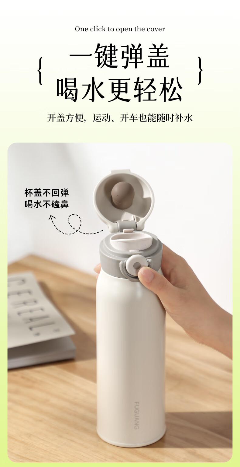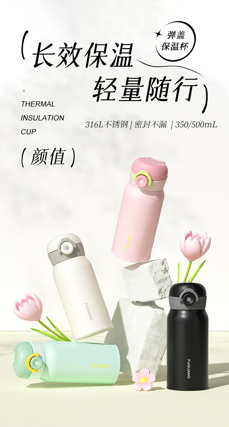 富光乐享500ml弹盖真空316不锈钢时尚儿童小学生水杯子24小时保温杯 单位:个 白色