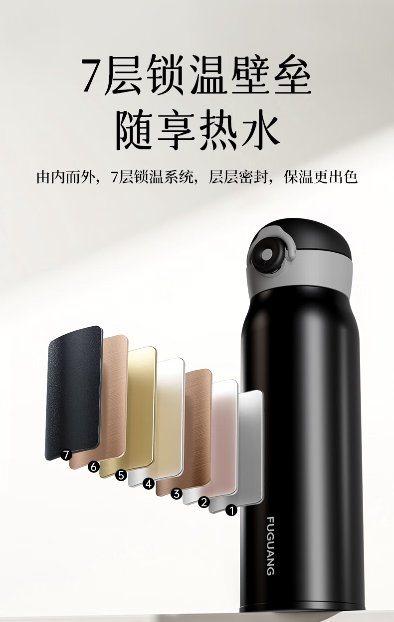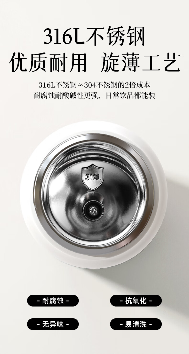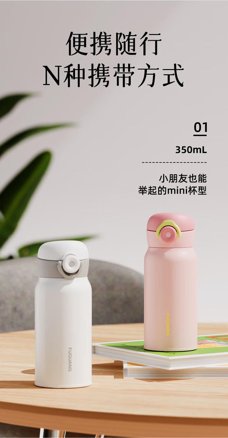 富光乐享500ml弹盖真空316不锈钢时尚儿童小学生水杯子24小时保温杯 单位:个 白色