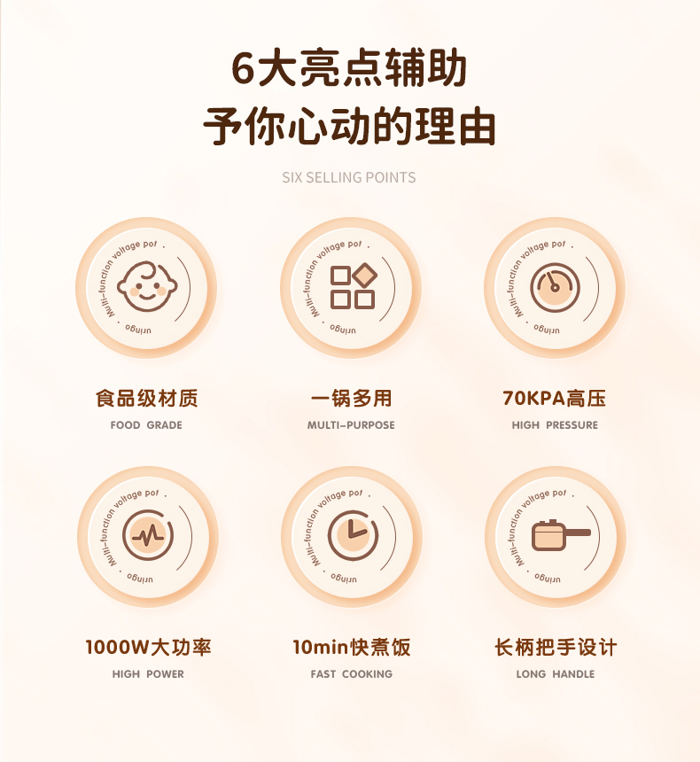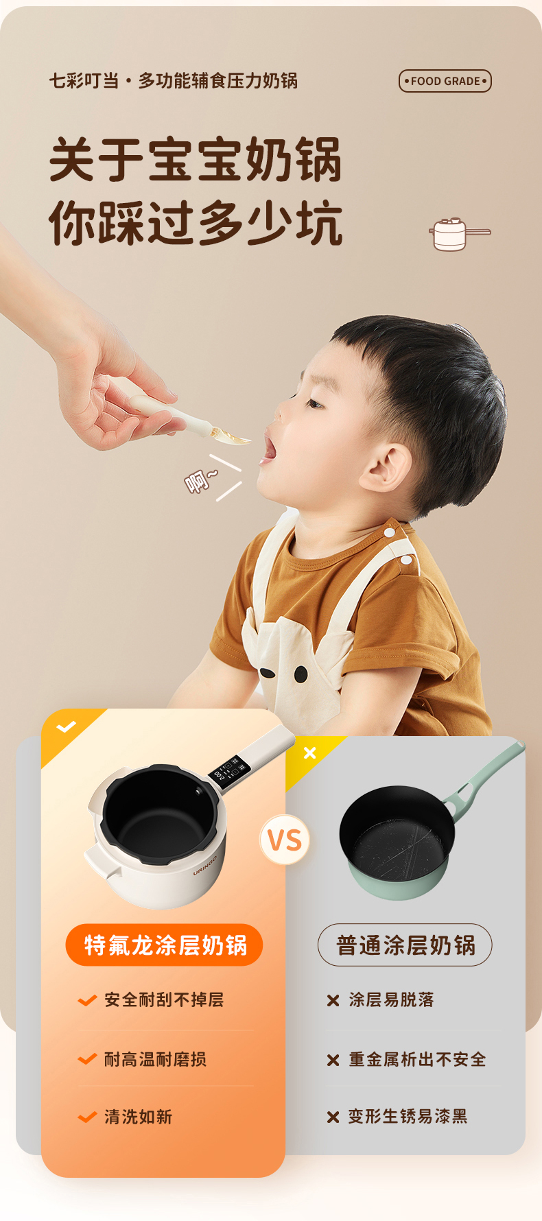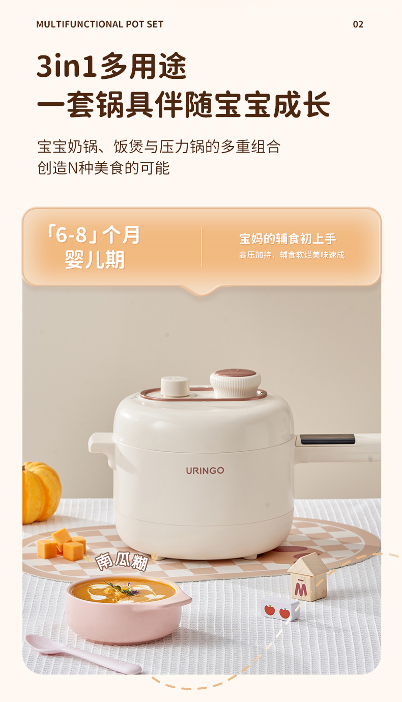 七彩叮当 2L电压力锅小型高压锅婴儿辅食锅宝宝小奶锅QM0802(单位:台) 象牙色